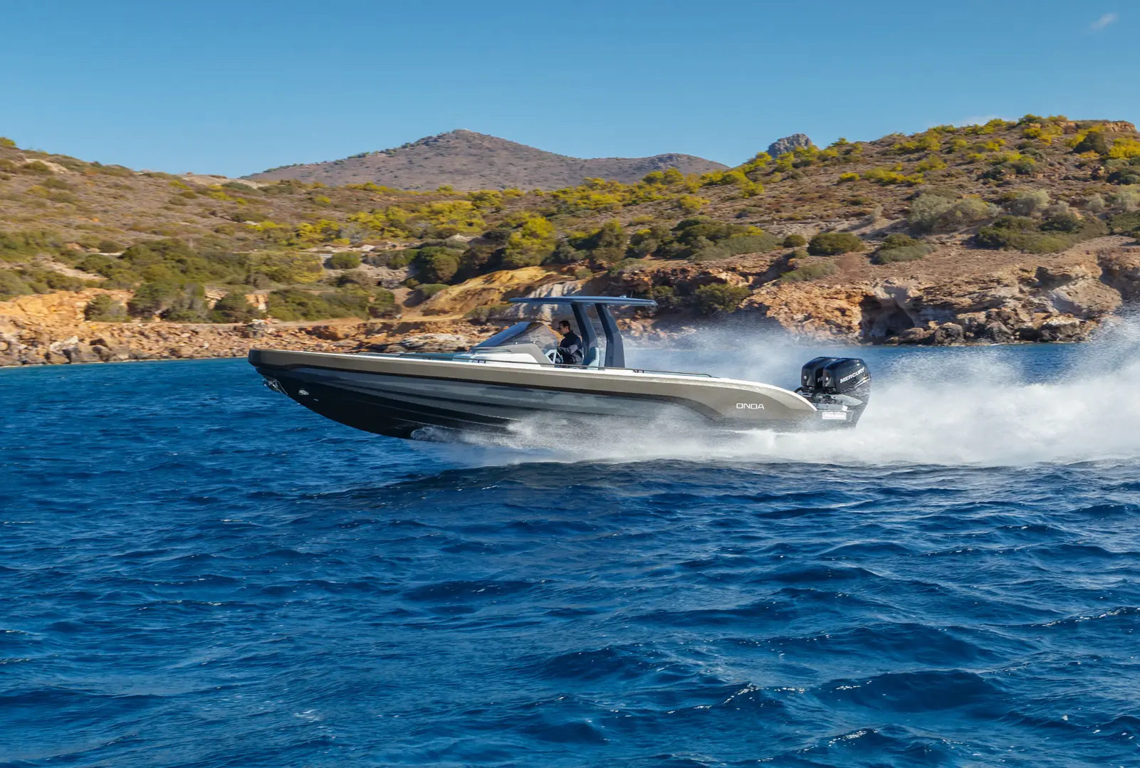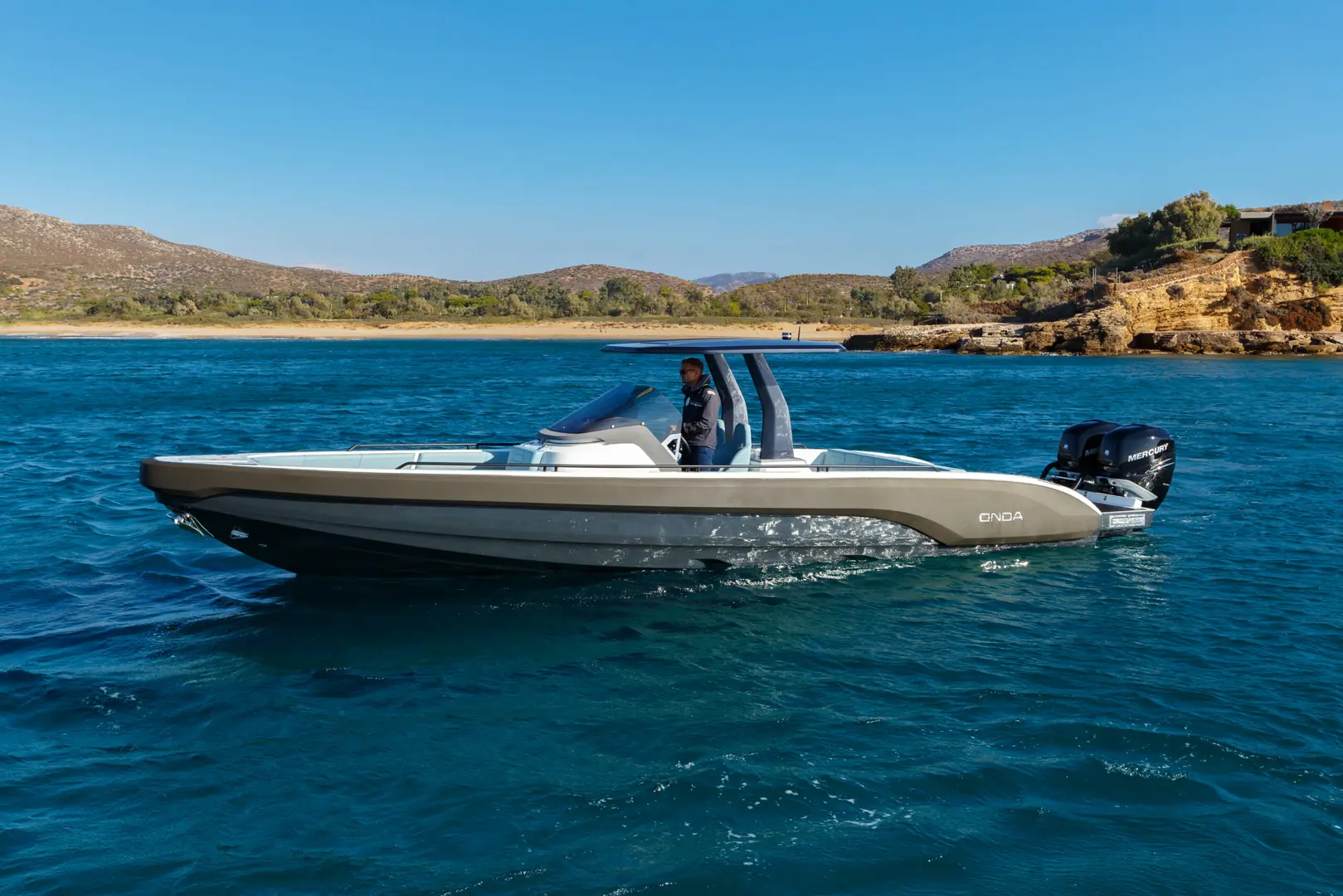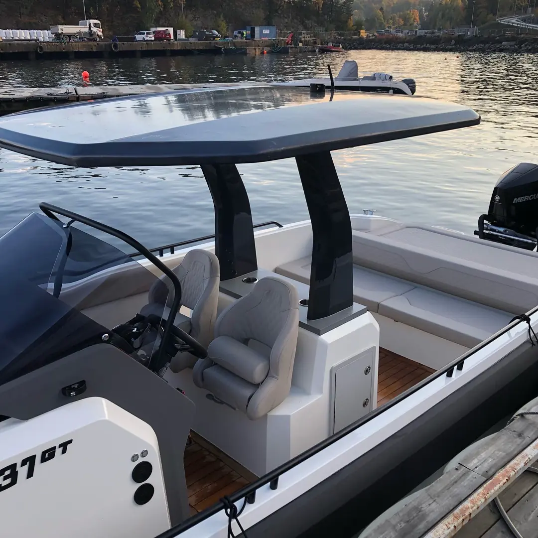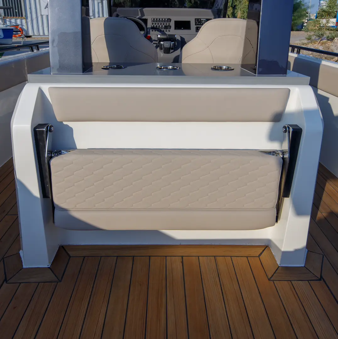 Onda 371 Gran Turismo tilbyr en åpen dekksløsning som kan fullt ut tilpasses ditt behov for dekksløsning takket være et modulært design samtidig som det ikke går på kompromiss med komfort og sikkerhet. Uansett om du velger solsengløsning, seteløsninger, wetbar/grill eller karbontak – vil den interne bredden sammen med høye sidebord, gi en opplevelse av en allsidig båt som kan benyttes både som en dagsturbåt og/eller en sportslig hyttebåt.
