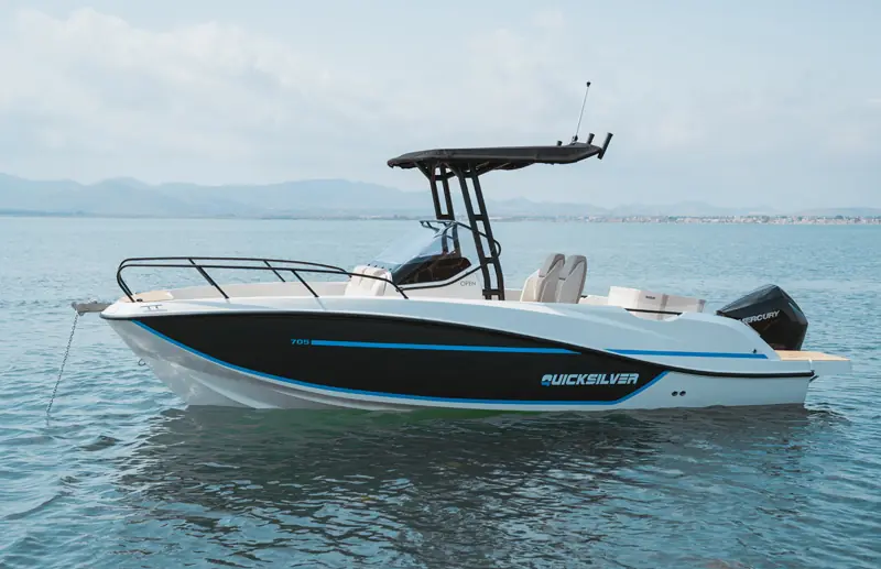 Quicksilver 705 Open tilbyr stil, ytelse og allsidighet, med plass til opptil åtte personer i en elegant og romslig design. Mercury-motoren med opptil 225 hk gir spennende og responsiv kjøring. Smart Edition tilbyr en forbedret opplevelse gjennom populære alternativer i en prisgunstig pakke.