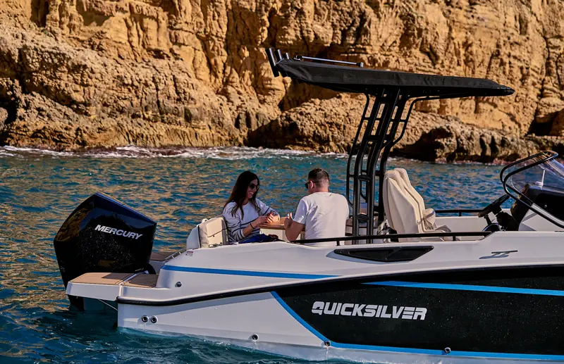 Få mest mulig ut av enhver utendørsopplevelse, enten det er på innsjøer og elver eller til sjøs, ombord på den helt nye Quicksilver 805 OPEN. Ta turen komfortabelt gjennom kystfarvann med opptil ni personer med allsidige sitteplasser, dype fribord og den bredeste kabinen i sin klasse. Gjør hver reise til et eventyr med allsidige funksjoner for å skape et område for bevertning, en oase på vannet eller et ideelt oppsett for en fisker. Legg igjen bekymringene dine på land, kjør komfortabelt i timevis, drevet av enmotors motorkonfigurasjoner på opptil 300 hk.