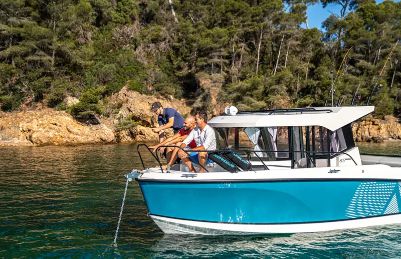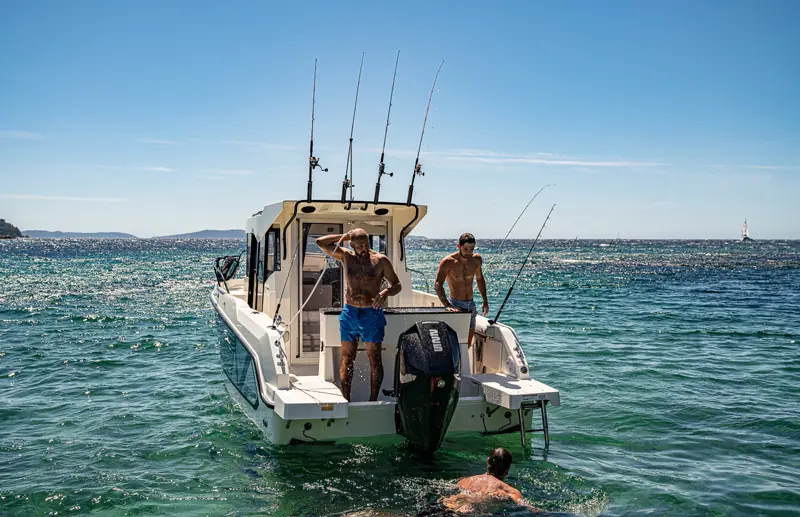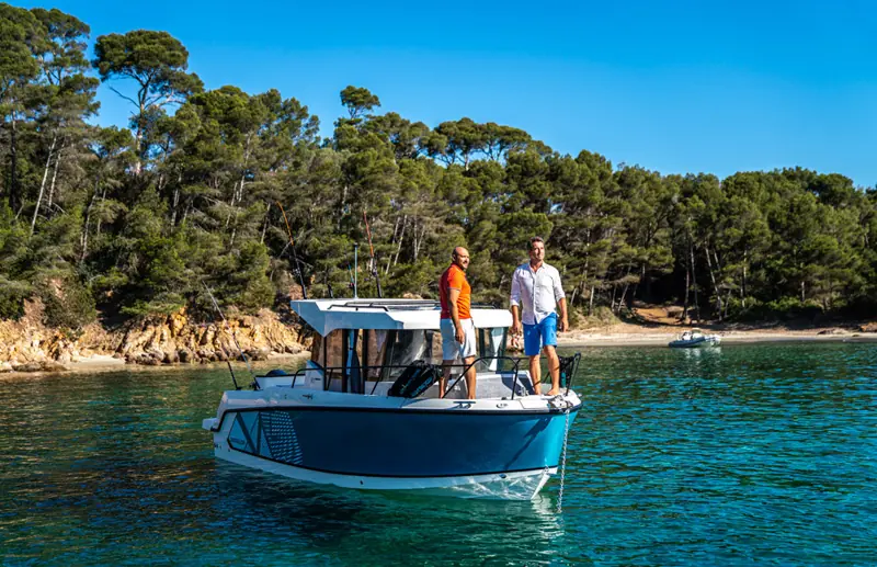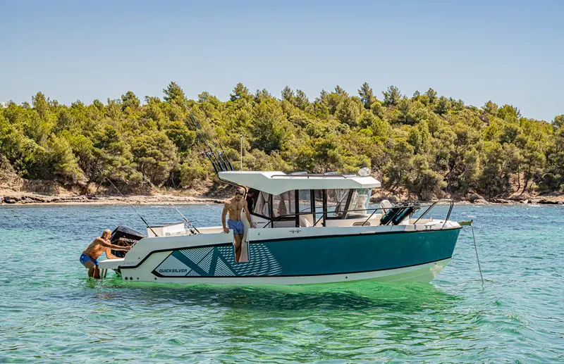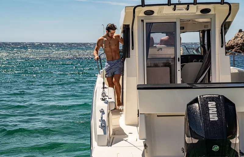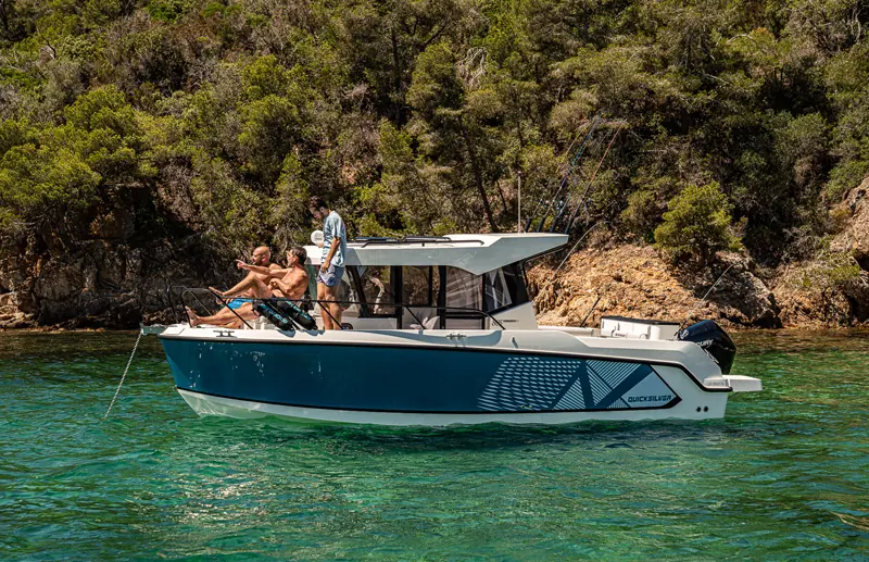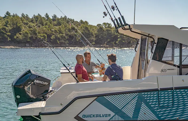 For eksempel har den en oksygenanriket fiskekum som holder agnet ferskt og fangsten enda ferskere. Nå fiskeområdet raskere med Mercurys én- og tomotorskonfigurasjoner på opptil 350 hk, med opptil 9 personer om bord. Explorer-utgaven oppgraderer turen din på vannet til en førsteklasses opplevelse, med mer stil og luksuriøse fiskefunksjoner.