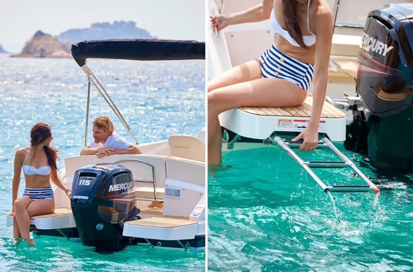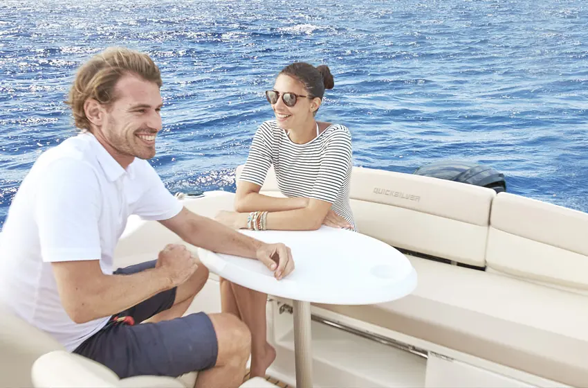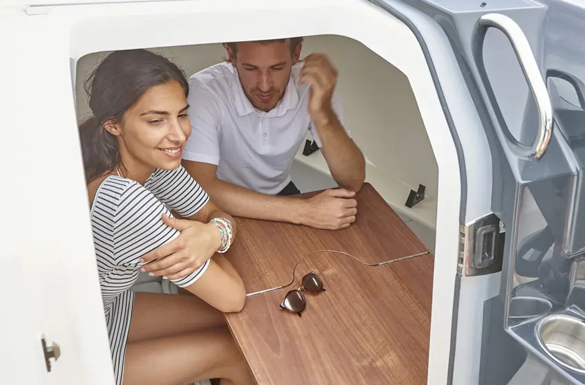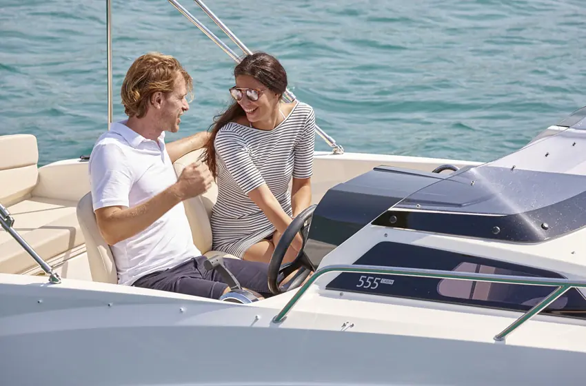 Activ 555 Cabin er klar. Til hva? I utgangspunktet alt – alt du trenger for å oppleve de gode stundene på sjøen. Finn deg en plass forut eller på solsengen i cockpiten, hent noe kaldt å drikke fra kjøleskapet og hør på favorittmusikken din som strømmer ut av lydanlegget utstyrt med fire høyttalere.