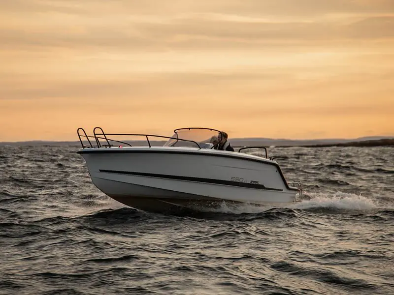 Vår mest stillegående, sparsomme og miljøvennlige styrpulpet noensinne – Ryds 550VI Sport er full av innovative og praktiske løsninger. Perfekt for deg som elsker vannsport, fiske og dagsutflukter. Båten har store oppbevaringsrom med plass til både barnevogn og vannski. Takket være styrpulpettens plassering på den ene siden bak, kan du bevege deg fritt i båten. Med de høye fribordene og pulpettløsningene føler du deg dessuten helt trygg under turen.
