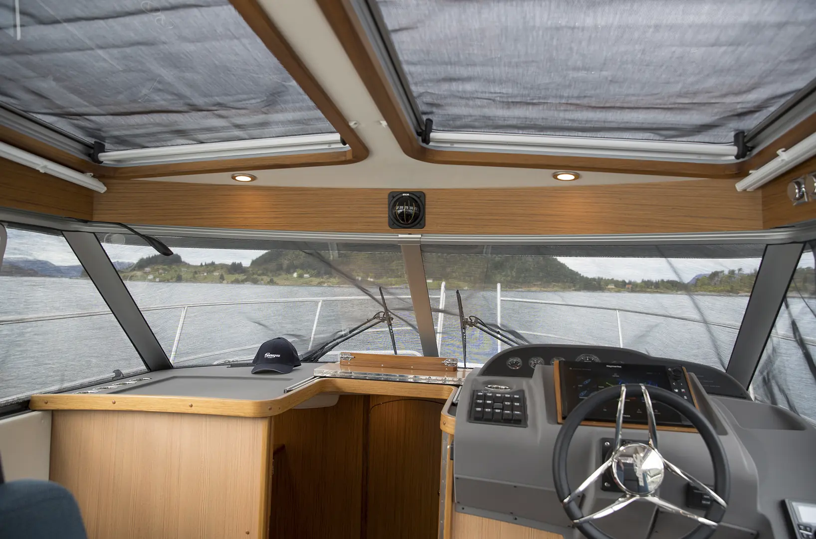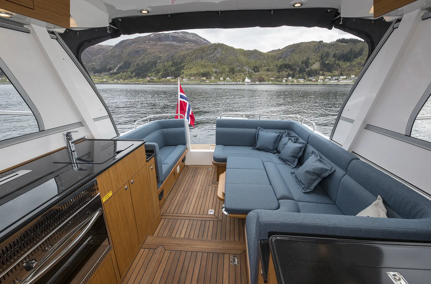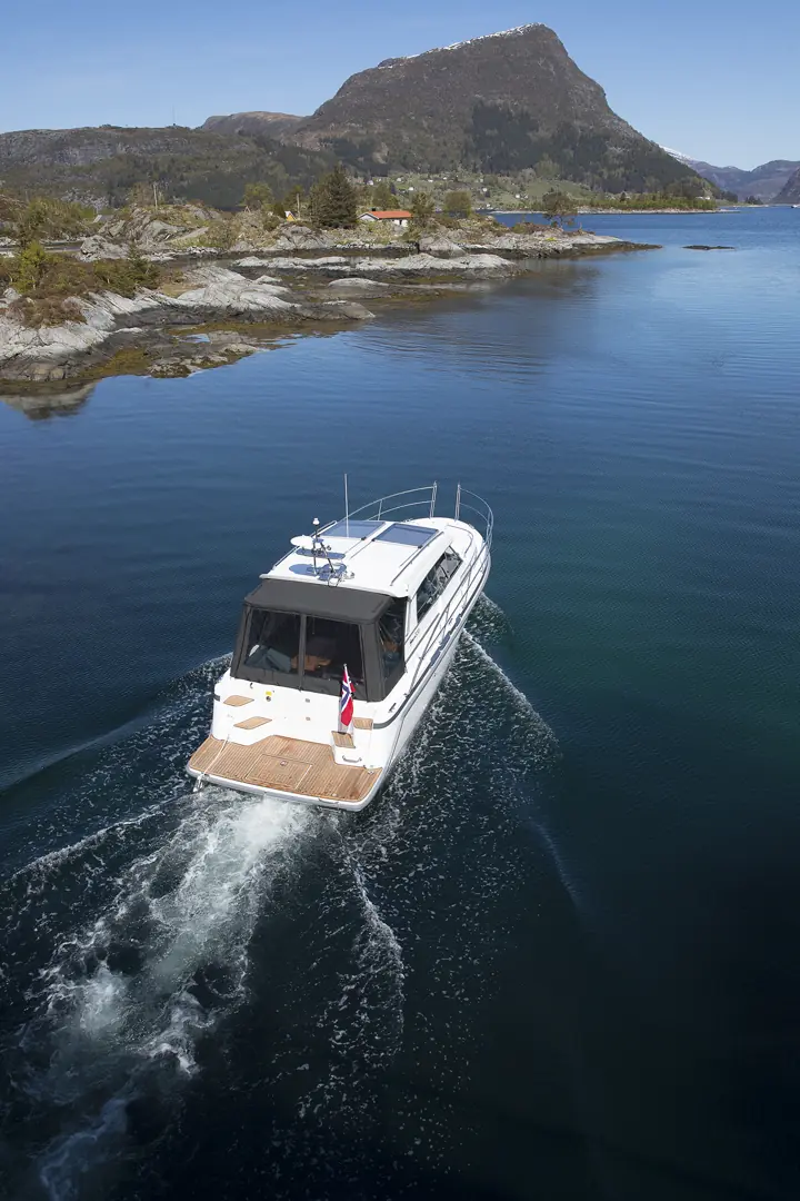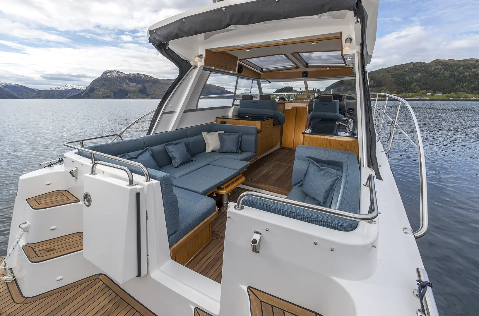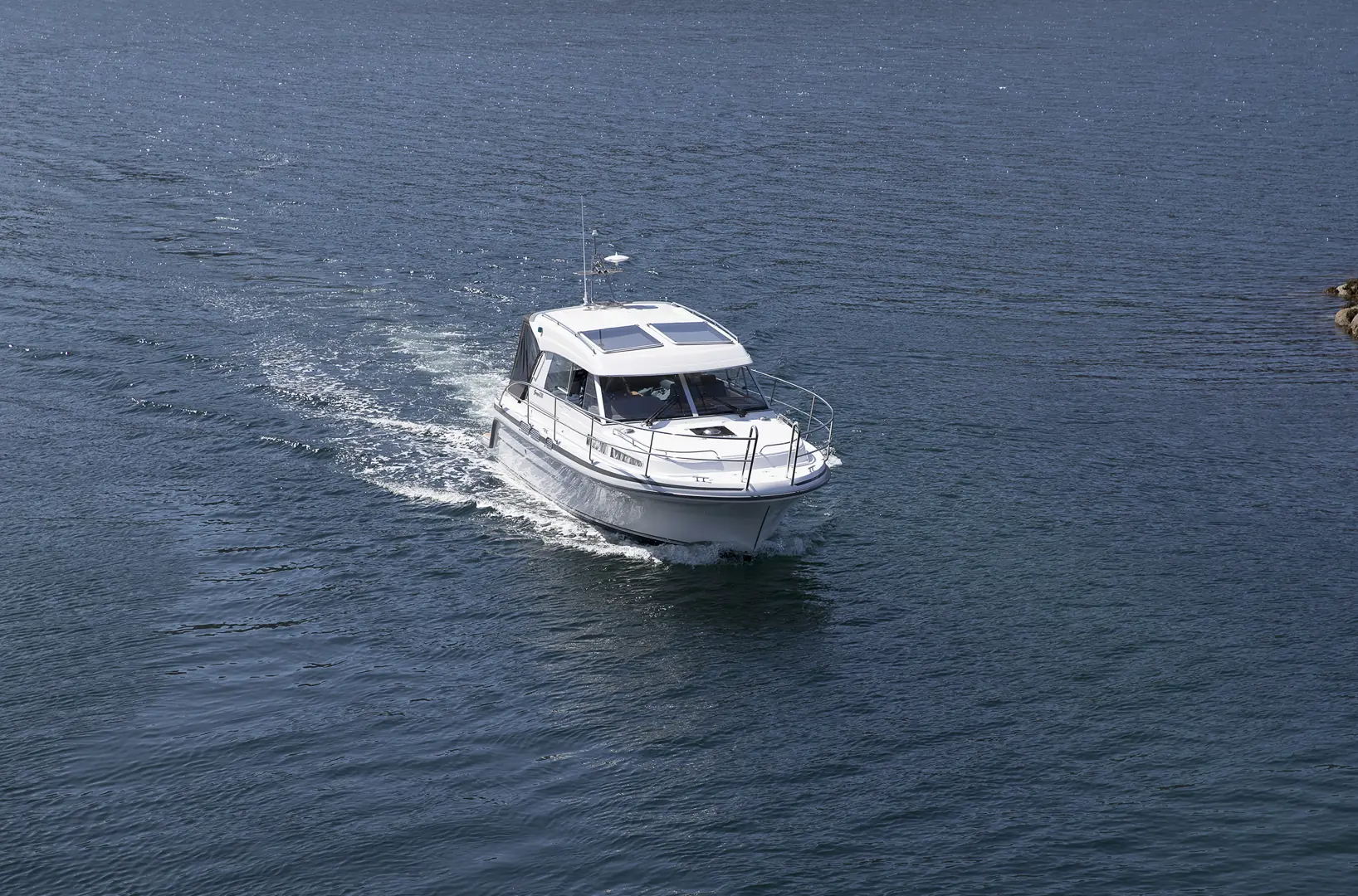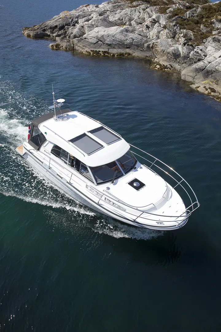 SAGA 330 er i motsetning til SAGA 325, som har skyvedør og selvlensende akterdekk, en åpen HT-modell med stor cockpit og god bokomfort. HT-versjonen med store skyveluker gir en mer beskyttet båt, mens SunTop versjonen med en gedigen luke med elektrisk softtop er perfekt for de gode sommerdagene. Båten er halvplanende med beskyttet propell og innenbords motor. Båtturen kan således nytes også i rolig gange.