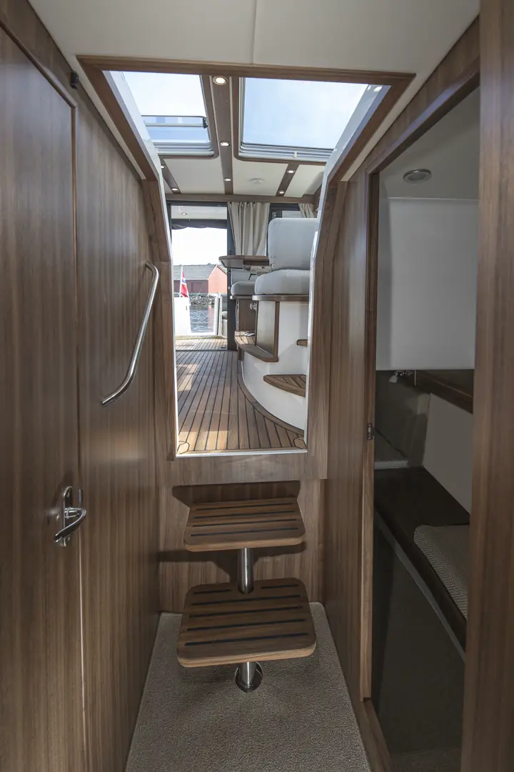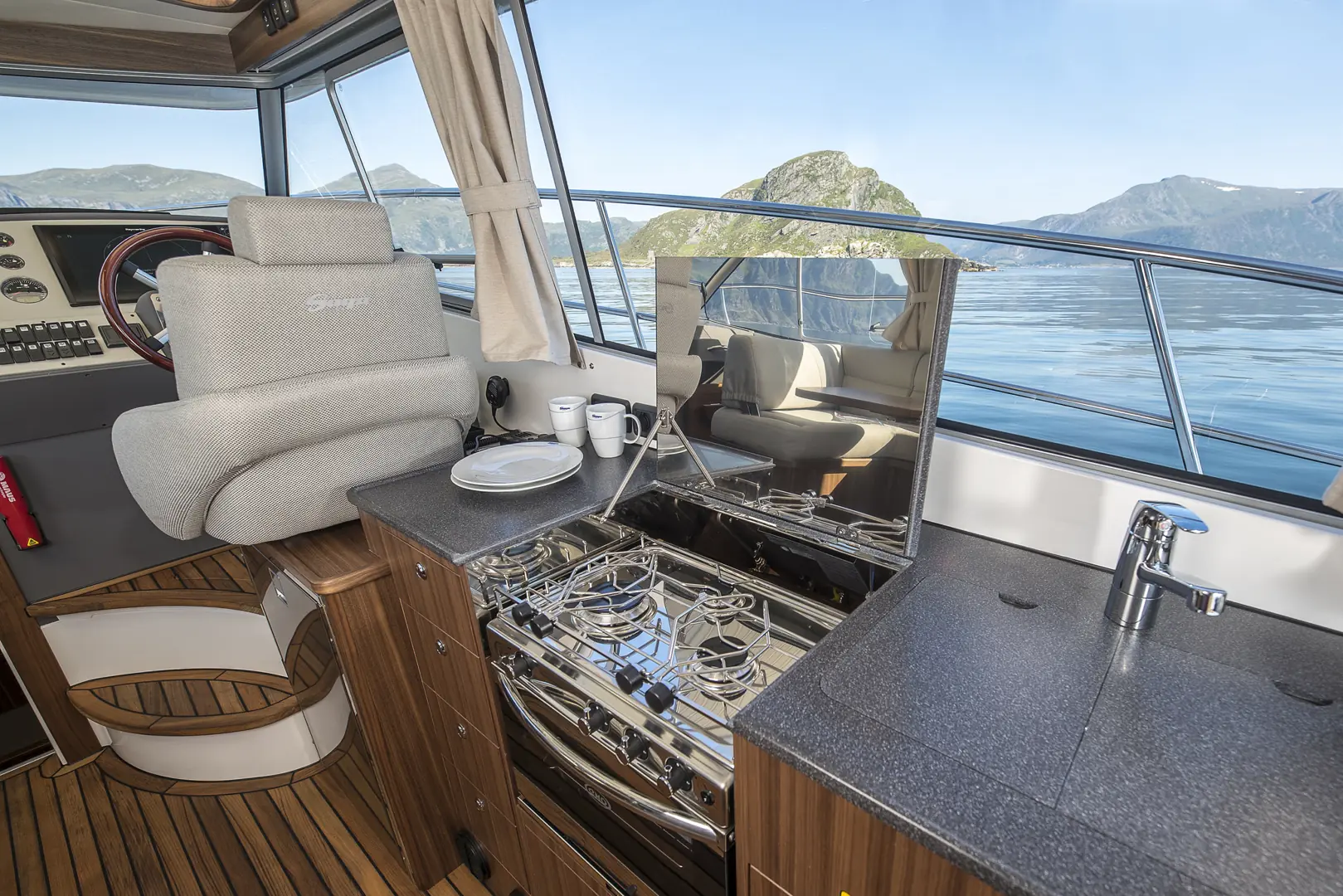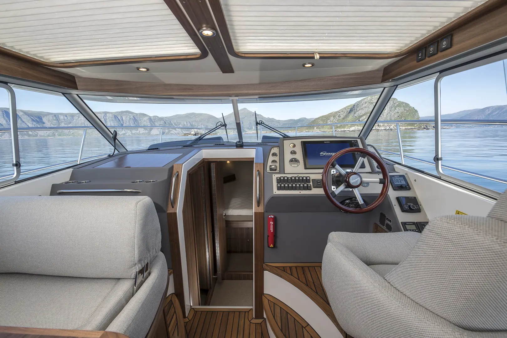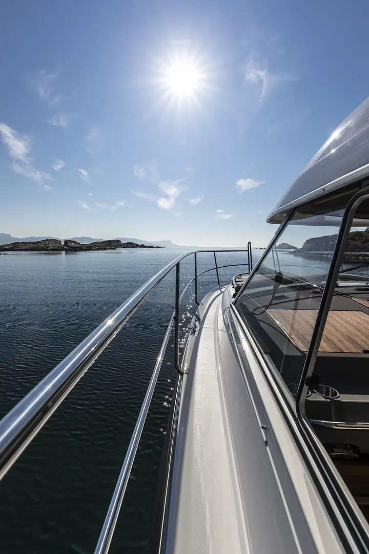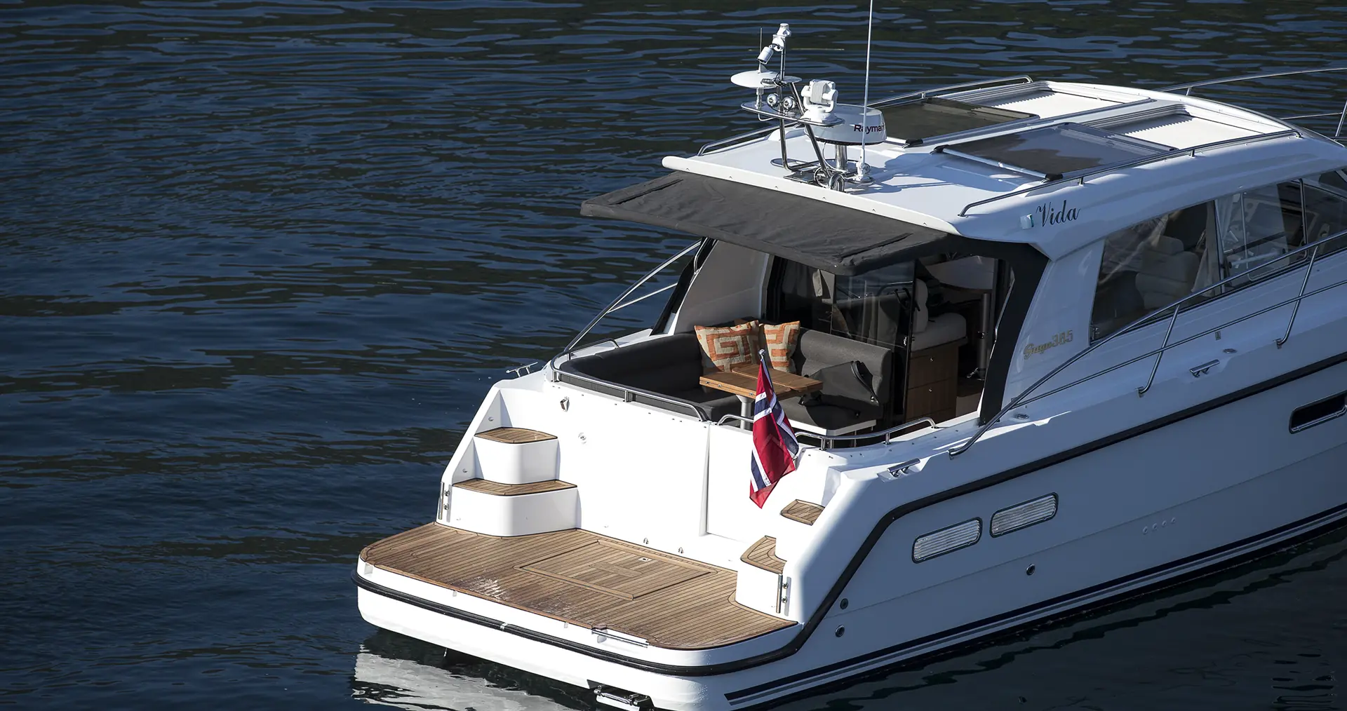 SAGA 385 byr på uovertruffen bokomfort, svært gode sjøegenskaper, god drivstofføkonomi og langt høyere marsjfart enn våre tidligere modeller. Legg spesielt merke til det svært romslige akterdekket, den over 3 meter lange midtkabinen og det store badet med dusjkabinett. Den store badeplattformen med integrert aktervinsj byr på egen oppholdssone og god plass til jolle på eget stativ. Båten er godt isolert og egner seg også til bruk i kaldere perioder av året. Drømmebåten for den aktive båtbruker!