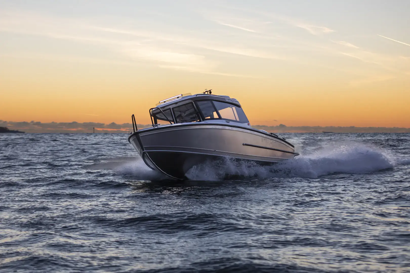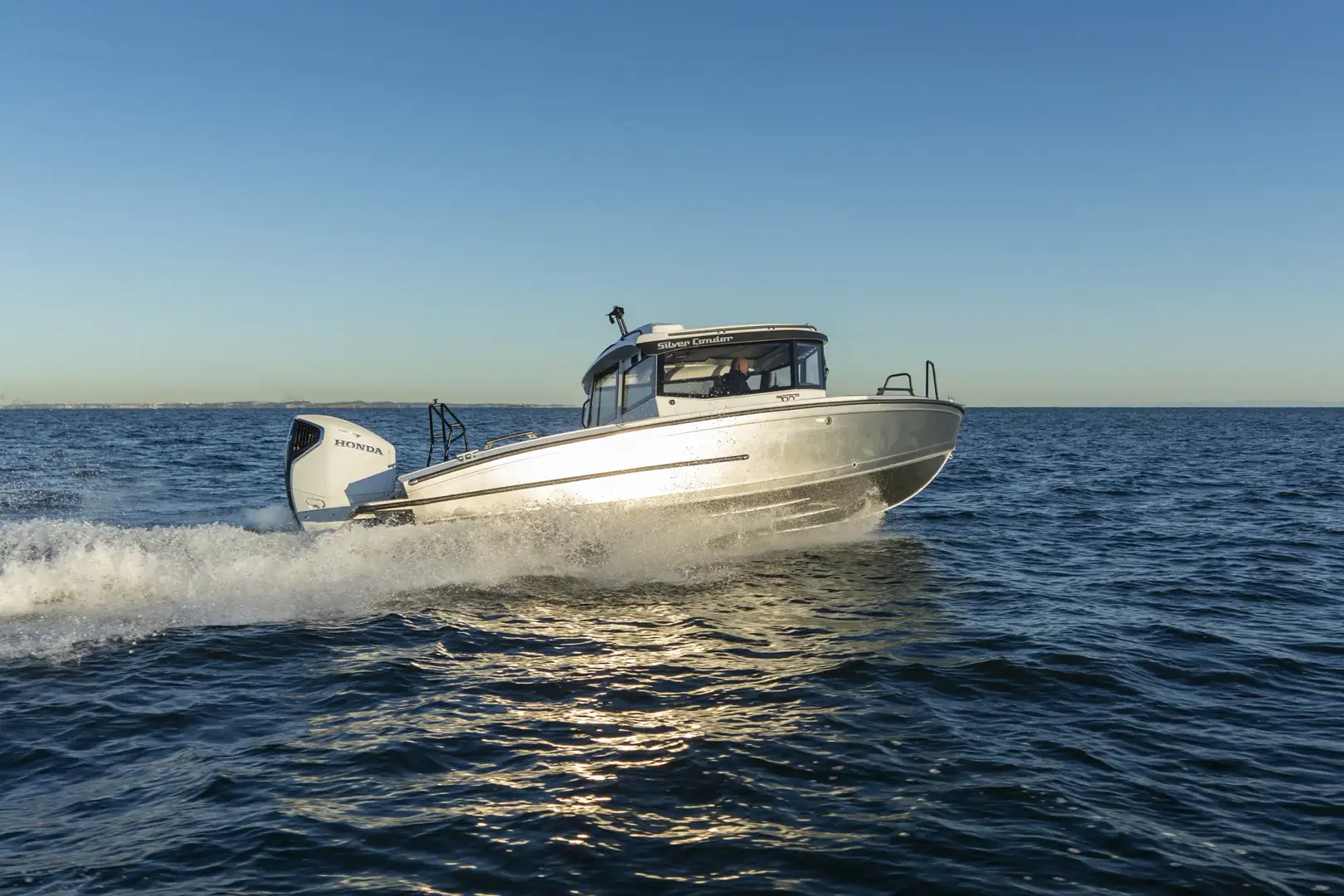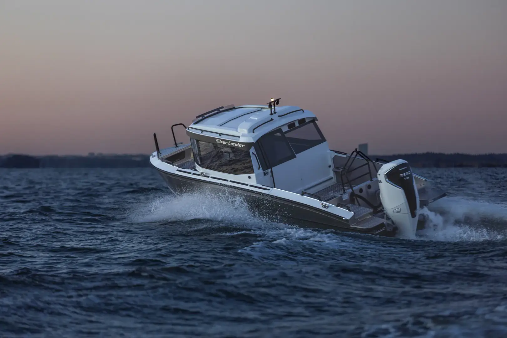 Condor Cabin, som er utstyrt med et stort akterdekk på 3,5 m², er det ideelle valget for yrkesbruk, transport, utflukter og fiske, samtidlig som den setter en ny standard for kabinbåter i denne størrelsesklassen. Den romslige styrehytten med stor åpningsbar takluke sørger for at hele følget reiser bekvemt og beskyttet uansett værforhold. Condor Cabin er en suveren kombinasjon av praktiske løsninger, komfort og ytelse – fullstendig produsert i Finland.Silver utvider sitt modellutvalg med en ny, robust kabinbåt – Condor Cabin. Denne imponerende åtte meter lange kabinbåten tilbyr en ideell kombinasjon av funksjonalitet, komfort og ytelse i sin størrelsesklasse, og innfrir forventningene til selv de mest krevende båteiere.