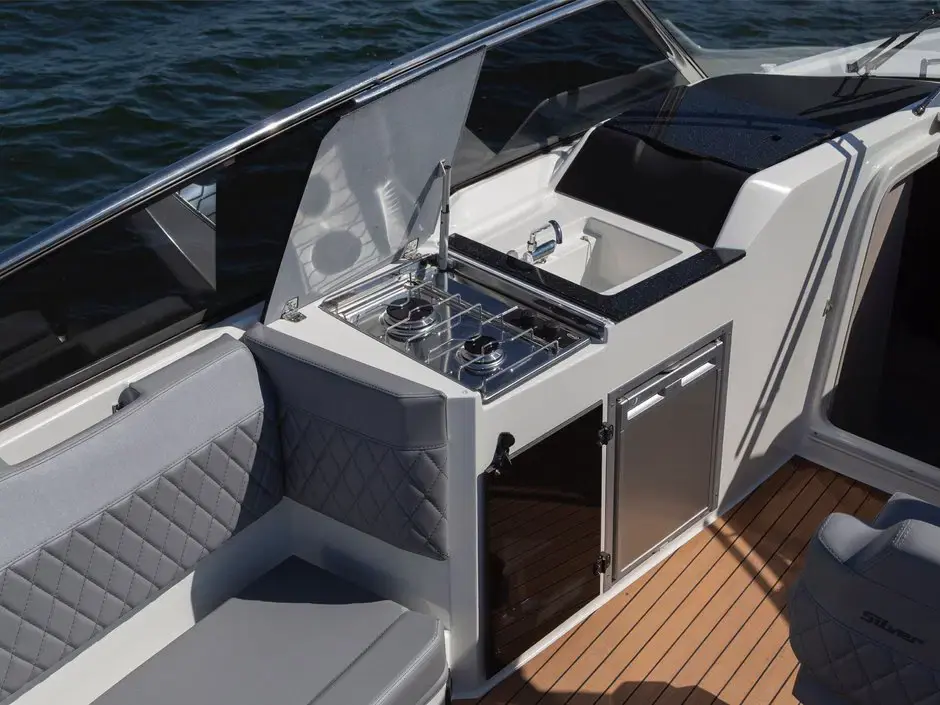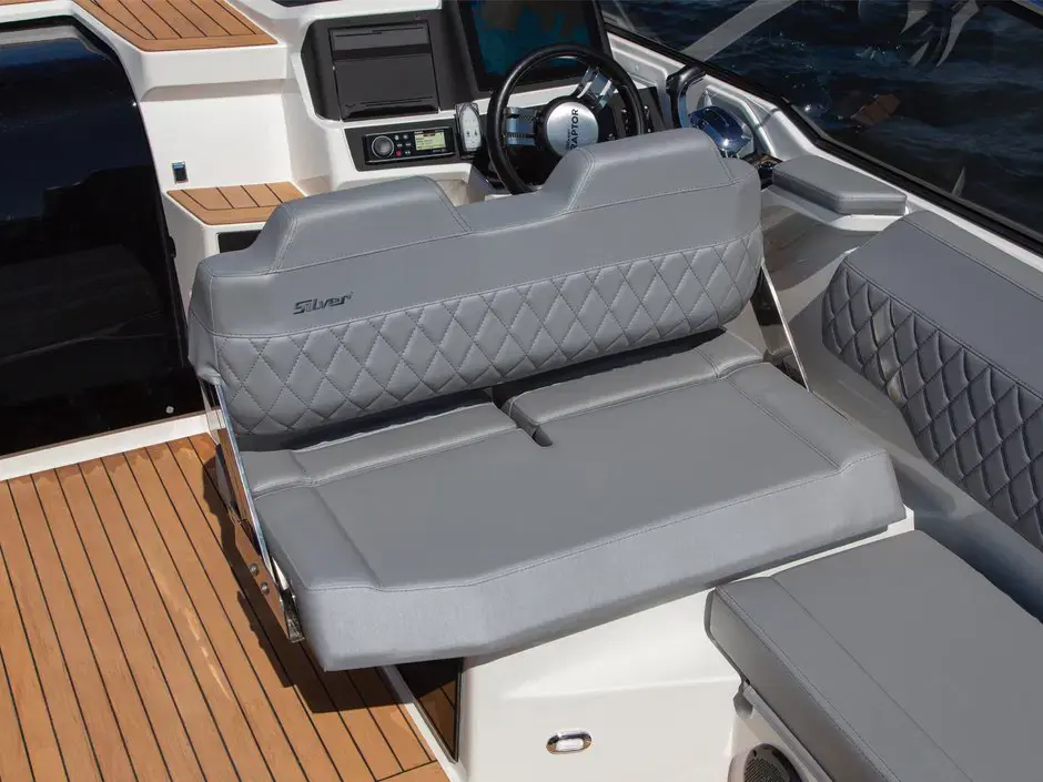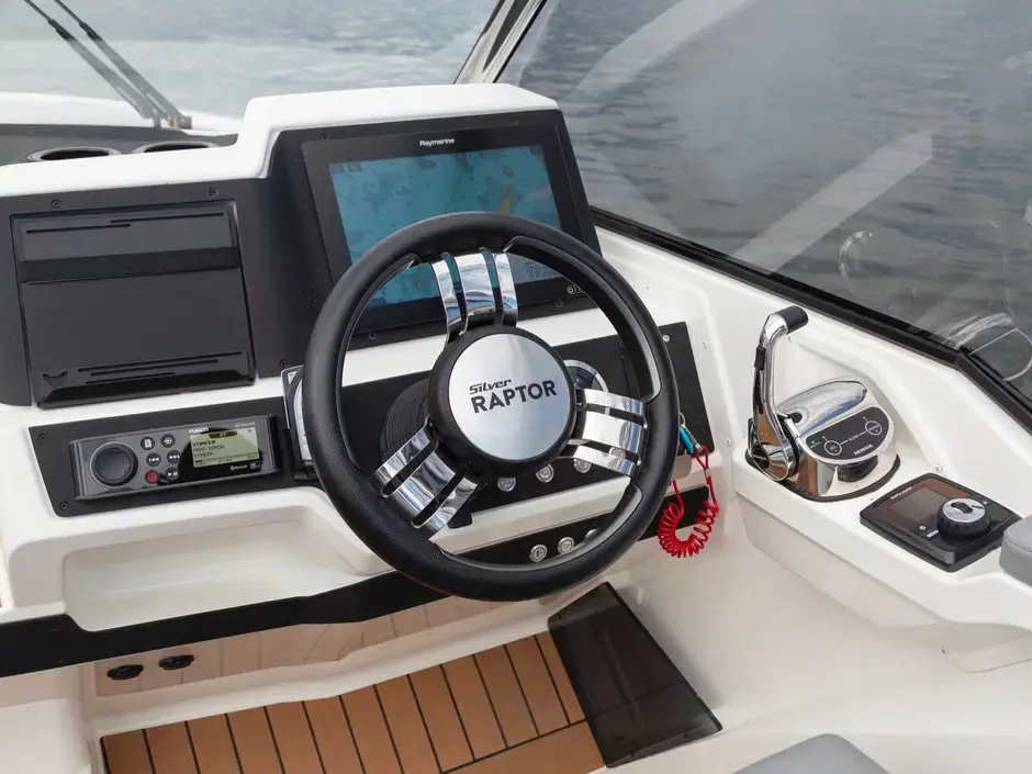 Den patenterte Petestep®-teknologien sikrer jevn og stabil kjøring, mens det romslige cockpitet og den store U-formede sofaen gjør det til et ideelt sted for sosialt samvær. Med et omfattende standardutstyr, inkludert Raymarine Axiom-skjerm, baugpropell og trykkvannsystem, tilbyr Silver Raptor en førsteklasses båtopplevelse. Med ekstrautstyr som gardinsett, havnekalesje og solcellepaneler, kan den tilpasses etter individuelle behov og preferanser.