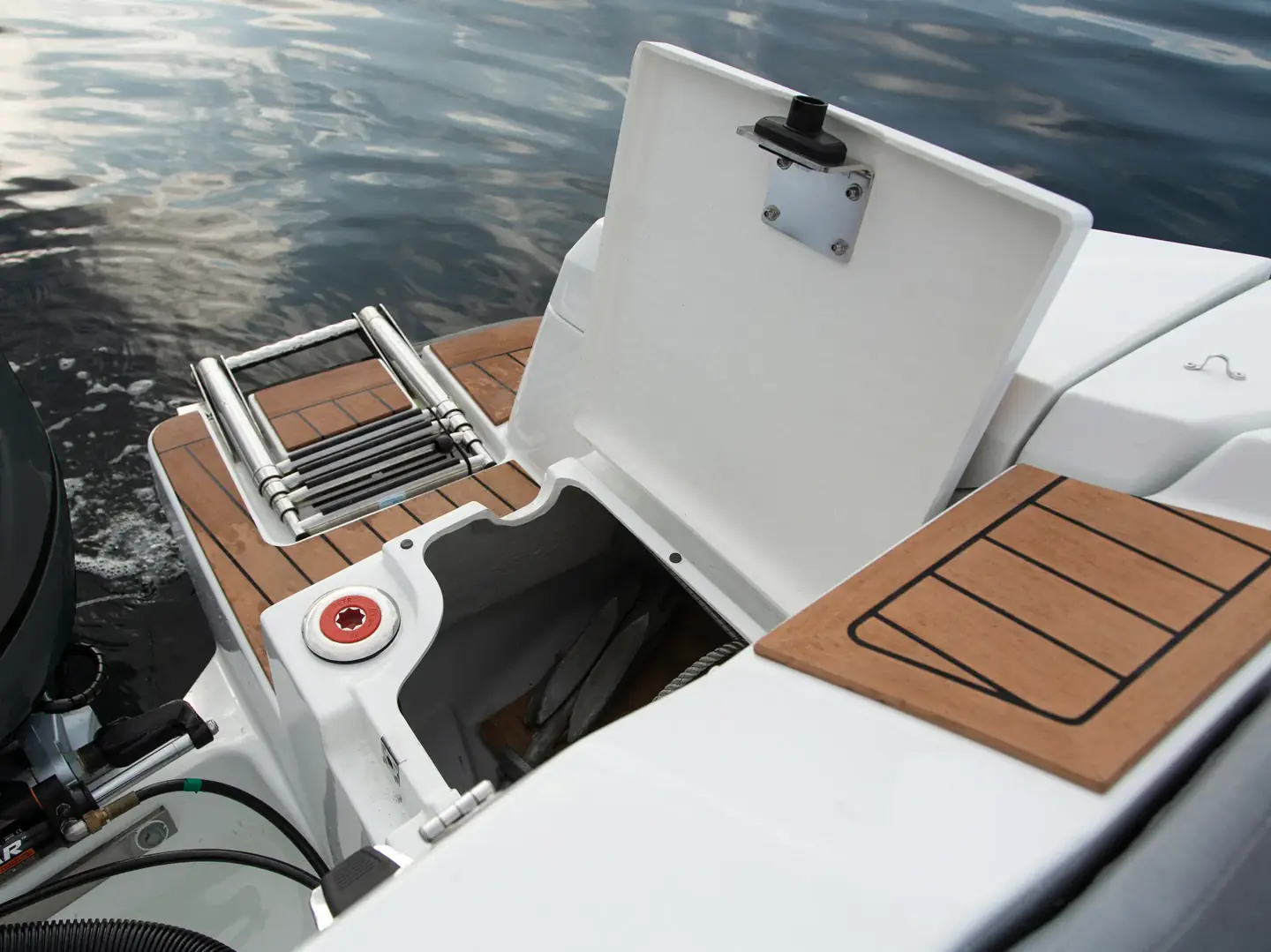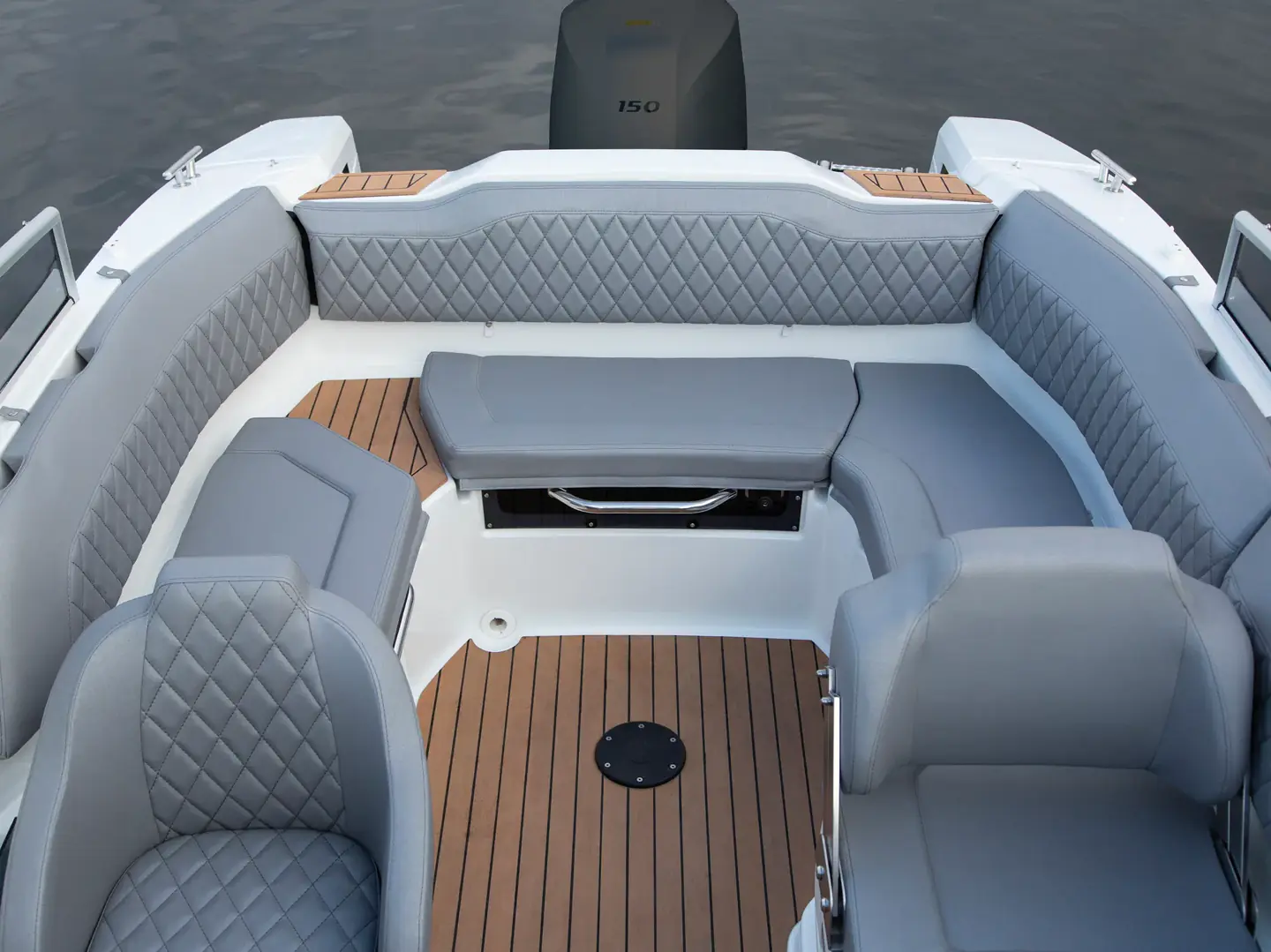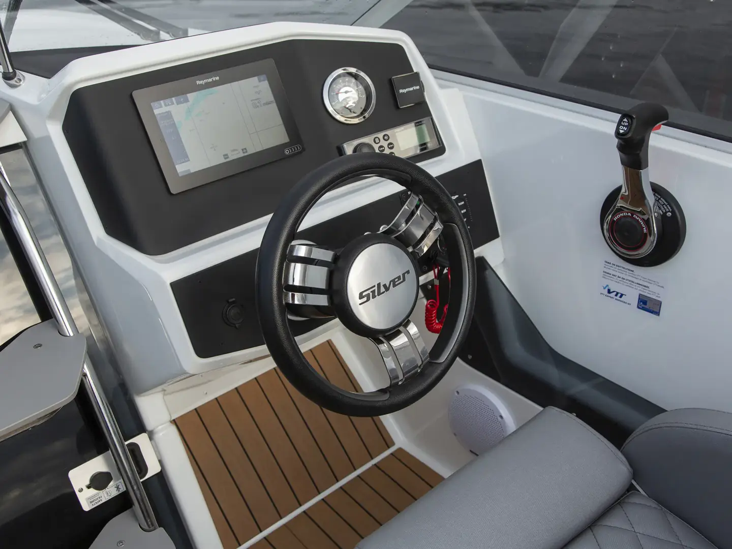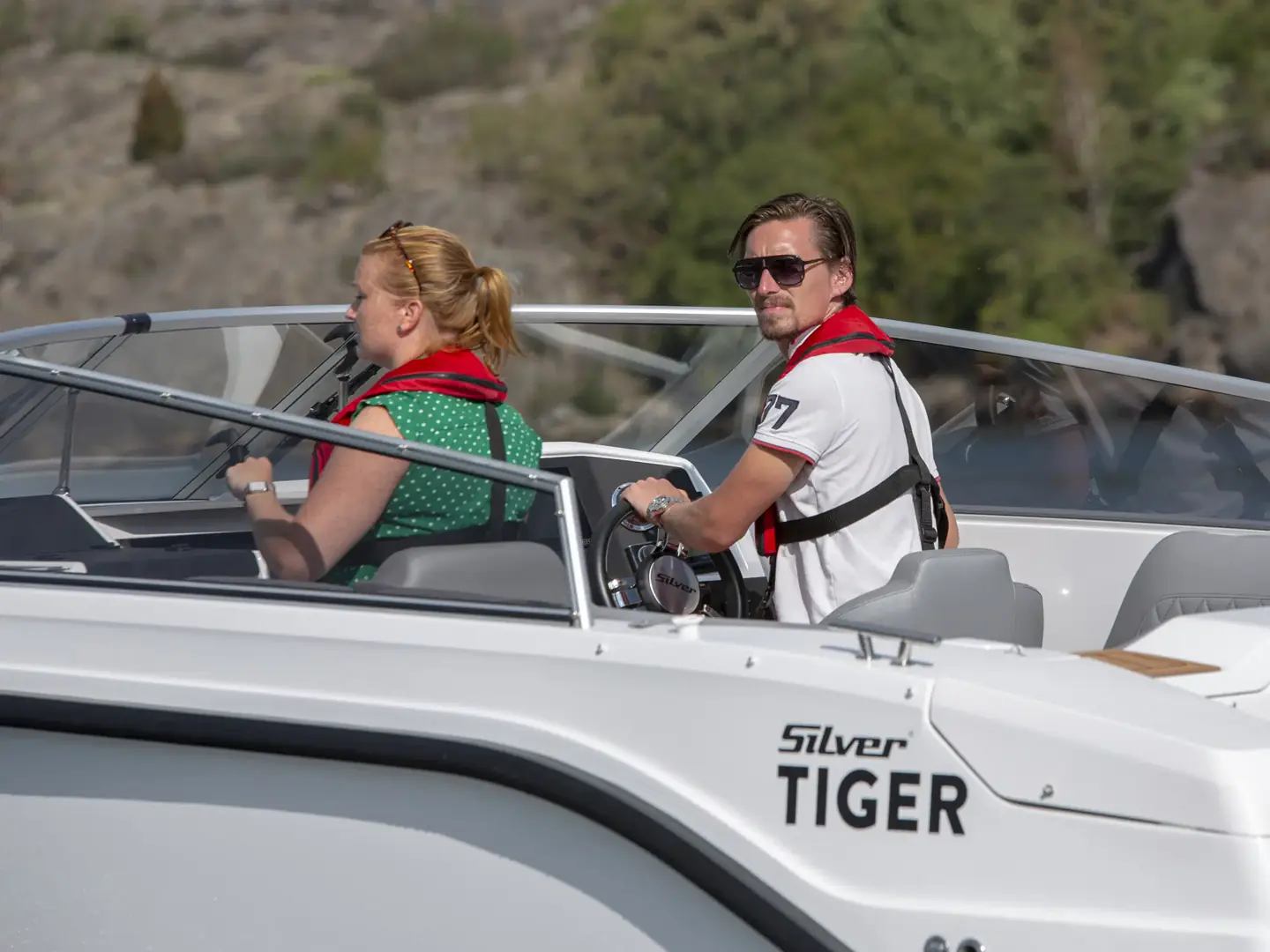 Tiger BRZ er en del av Silvers Z-serie og skiller seg ut med sin Bow Rider-layout. Petestep®-teknologi i skroget gir jevn og stille kjøring med redusert vannsprut. Interiøret har et stilfullt grått design med kompositt teakgulv for enkel vedlikehold. Den brede konsollen har god lagringsplass. LED-kjørelys er ekstrautstyr for enklere navigasjon i mørket.