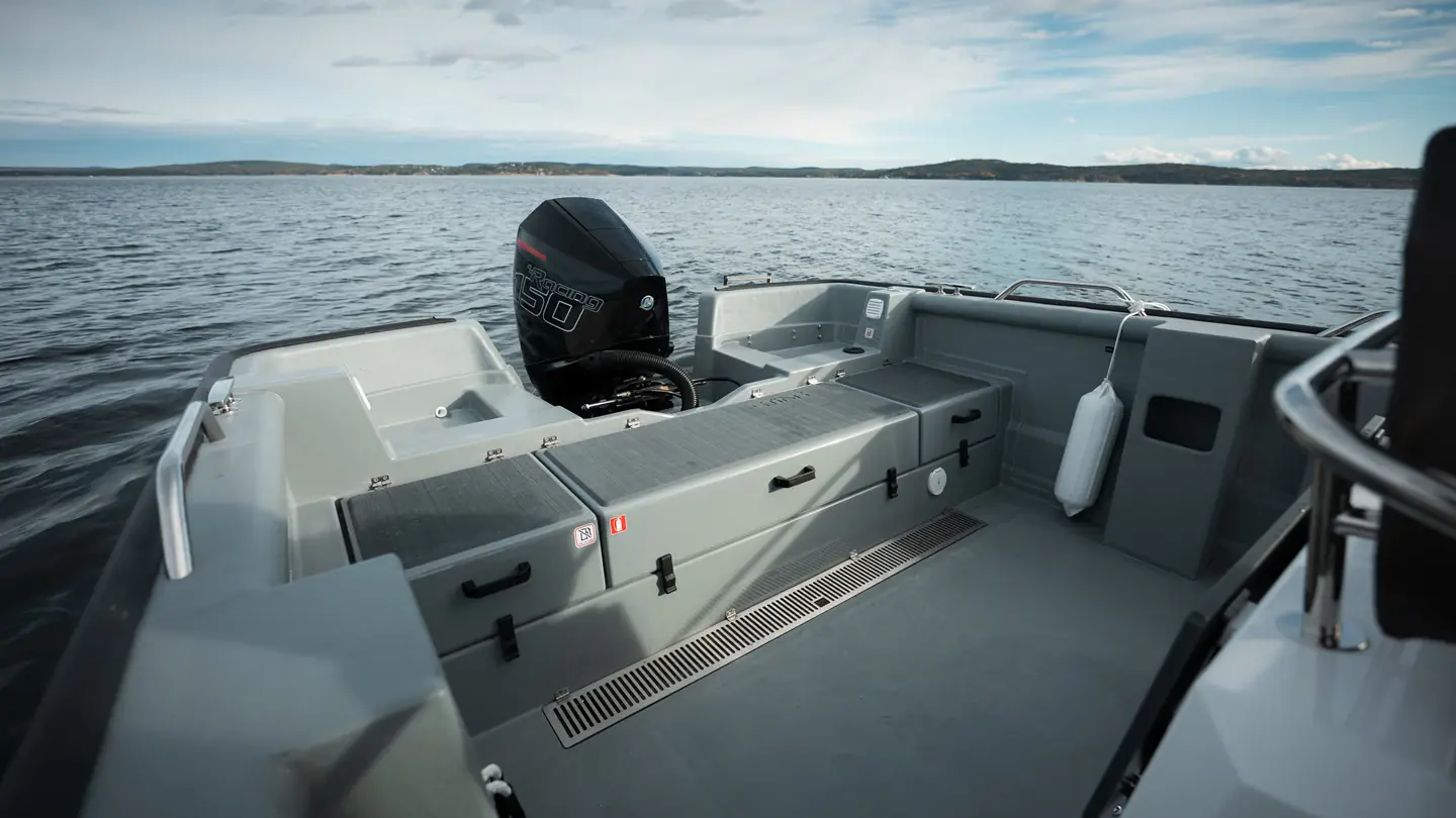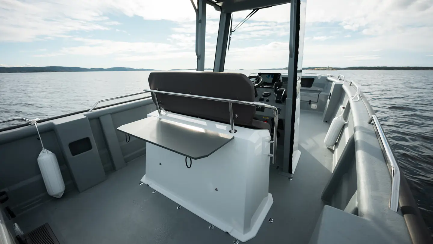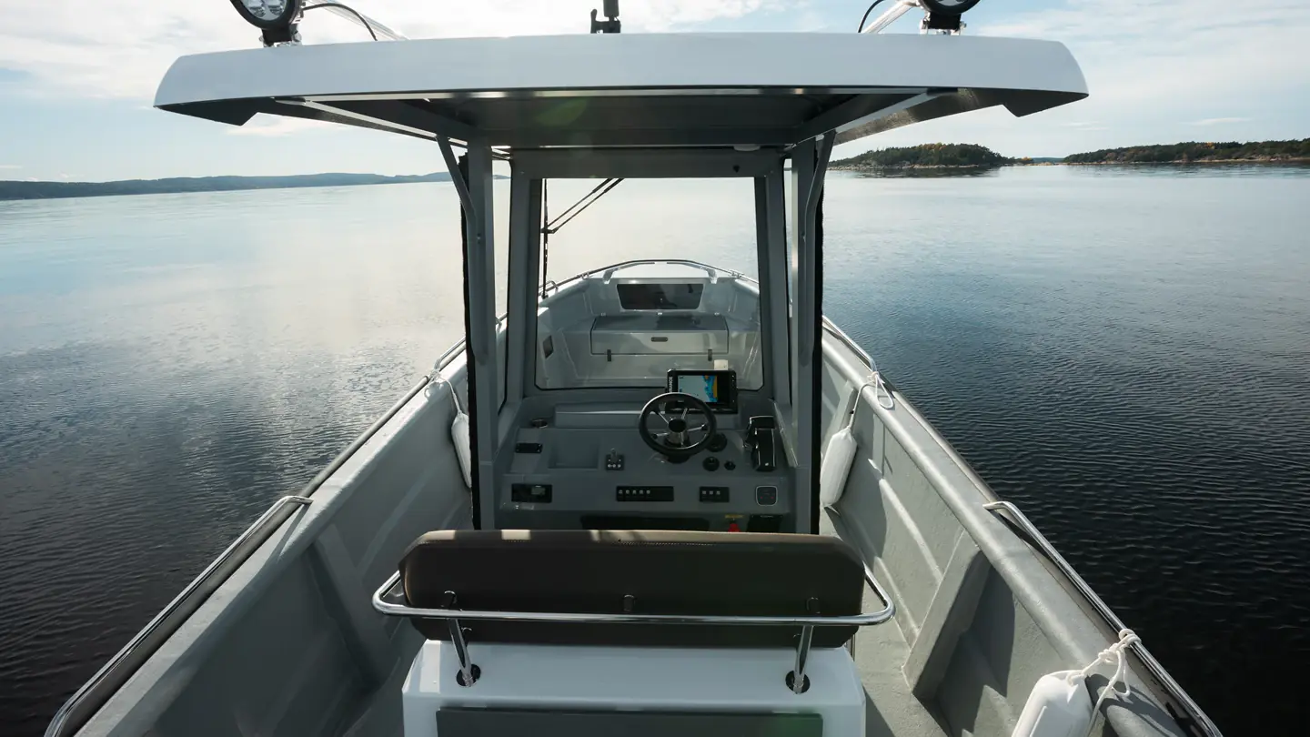 Båten gir deg enda bedre plass til fiskeutstyr og enklere bevegelse rundt på dekk, samtidig som T-Top´en gir deg den beskyttelsen mot vær og og vind du har behov for.