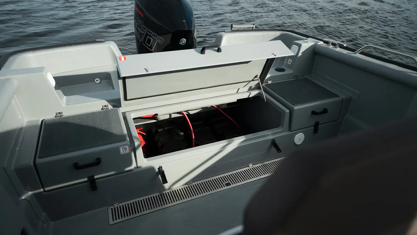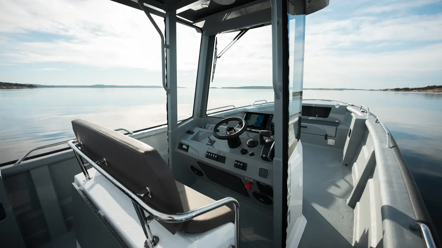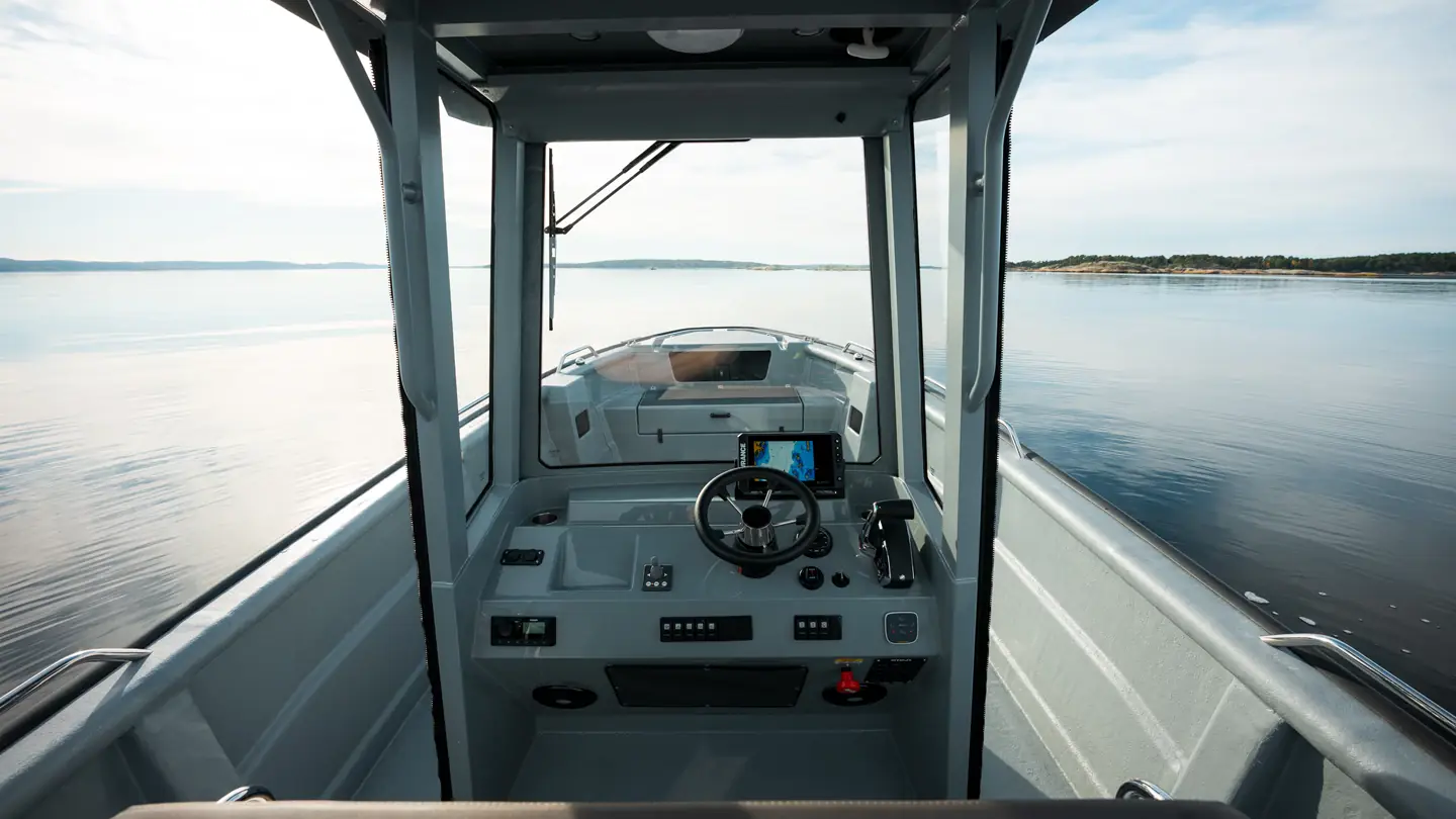 Båten gir deg enda bedre plass til fiskeutstyr og enklere bevegelse rundt på dekk, samtidig som T-Top´en gir deg den beskyttelsen mot vær og og vind du har behov for.