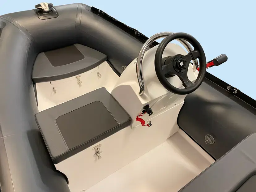 Suzumar MX-360 Lux Rib har glassfiberskrog og dørk. Denne RIB-båten har dobbelt bunn, noe som innebærer en flat dørk. I tillegg finnes det tre store stuverom.Suzumar MX-360 er en Rib med aktersofa med komplett putesett og styrekonsoll.