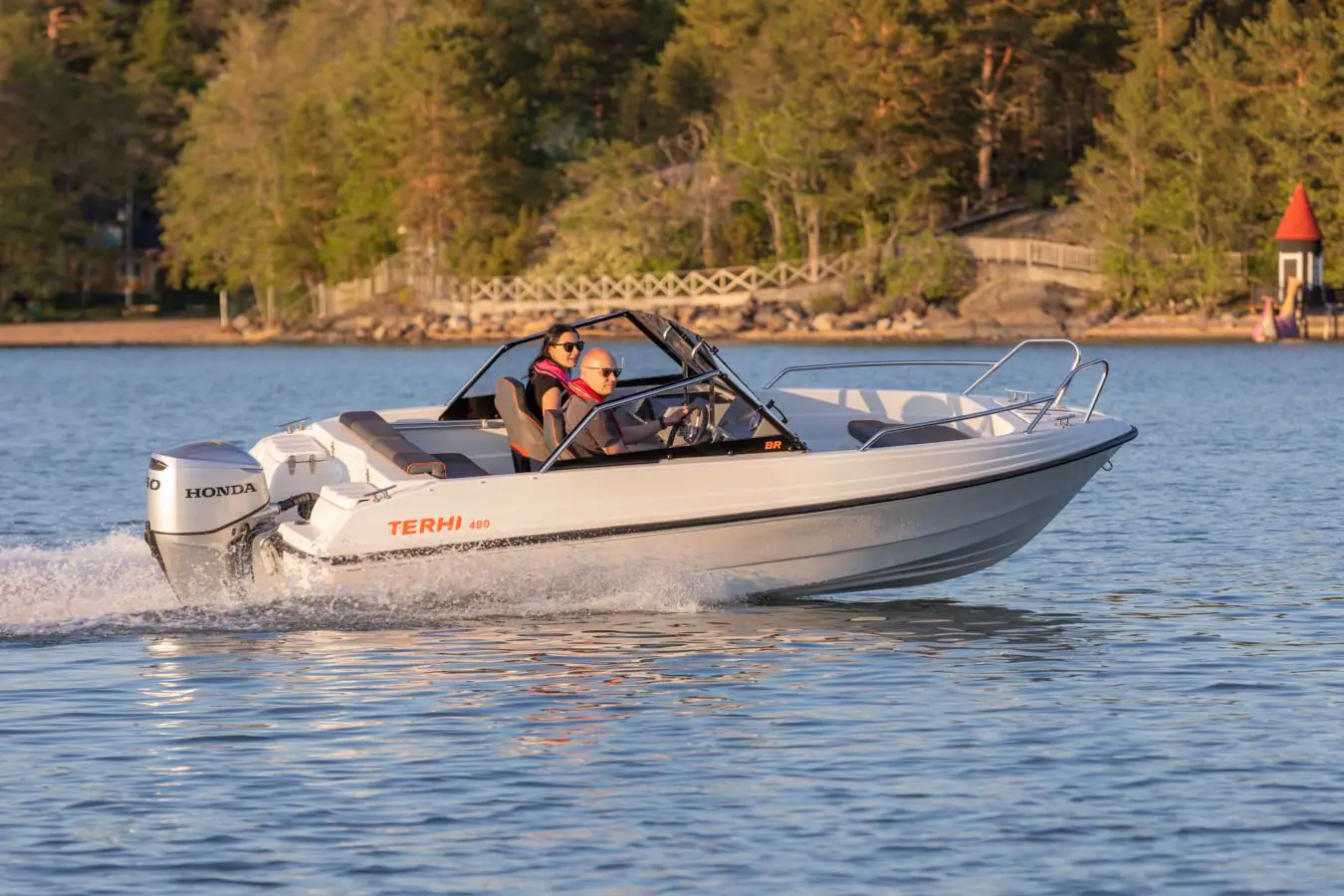 Denne nyutviklede Terhi BR-modellen er utstyrt med høyt fribord, jevn dørk og en stor åpen plass i baugen som er ideell for transport av gods og utstyr. Sikkerheten ombord er sikret med og stabile rekkverk.