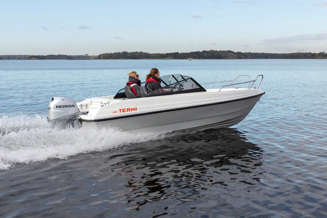 Denne nyutviklede Terhi BR-modellen er utstyrt med høyt fribord, jevn dørk og en stor åpen plass i baugen som er ideell for transport av gods og utstyr. Sikkerheten ombord er sikret med og stabile rekkverk.
