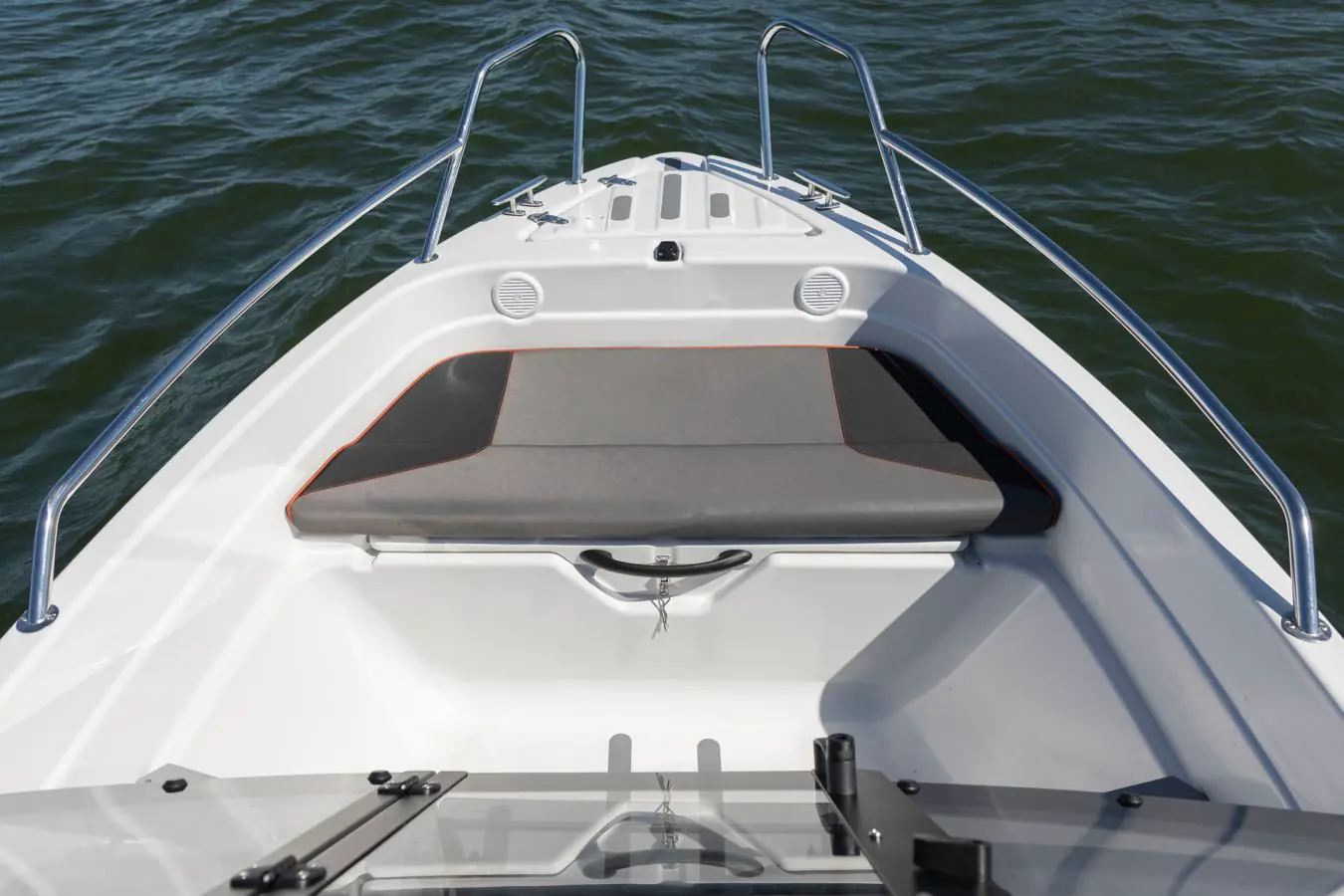 Bakdekket er utstyrt med to separate, polstrede seter samt en bred akterbenk som utgjør en sittegruppe for totalt fem personer. De beskyttende konsollene har ekstra god oppbevaringsplass samt en egen plass til kartplotter. I konsollene finner du også strømuttak samt to låsbare hanskerom.