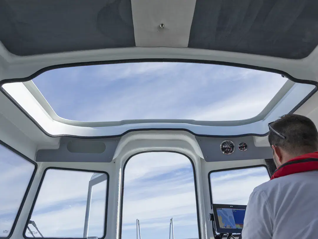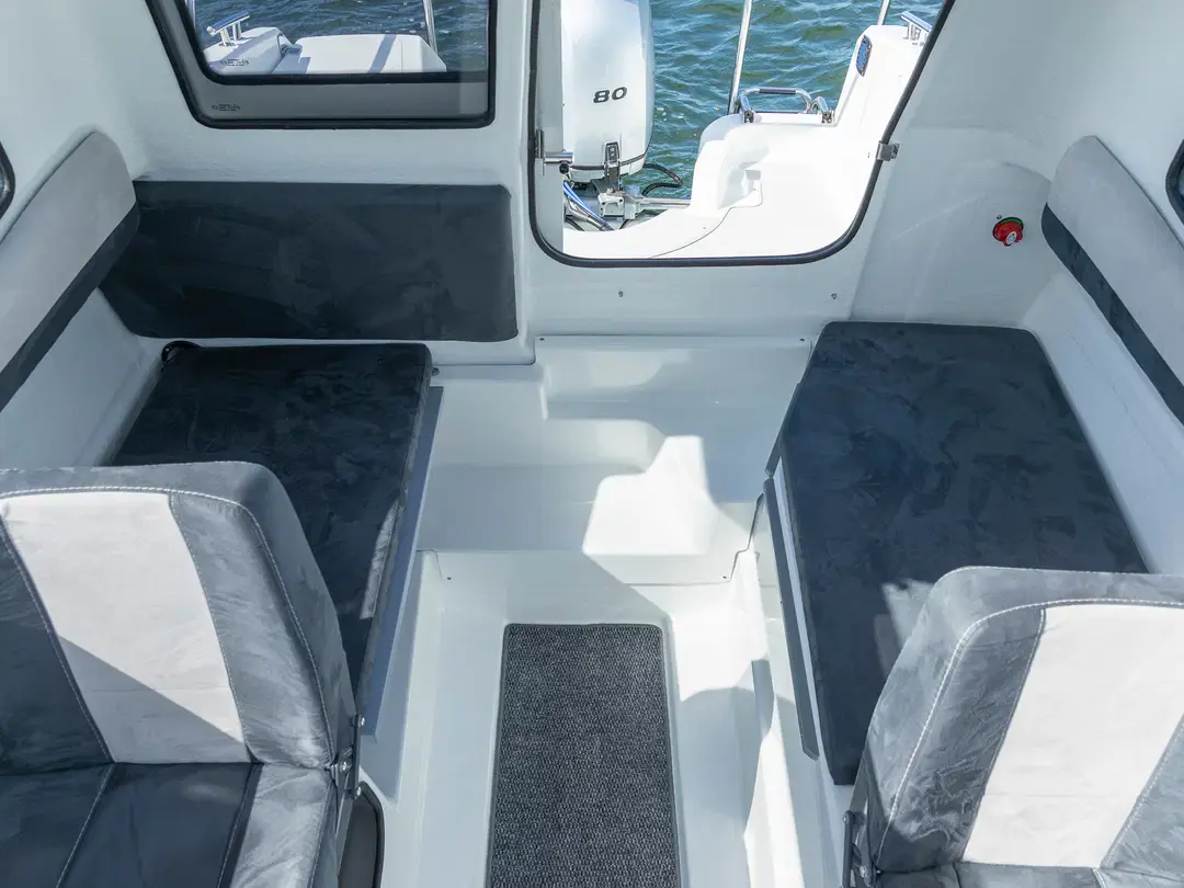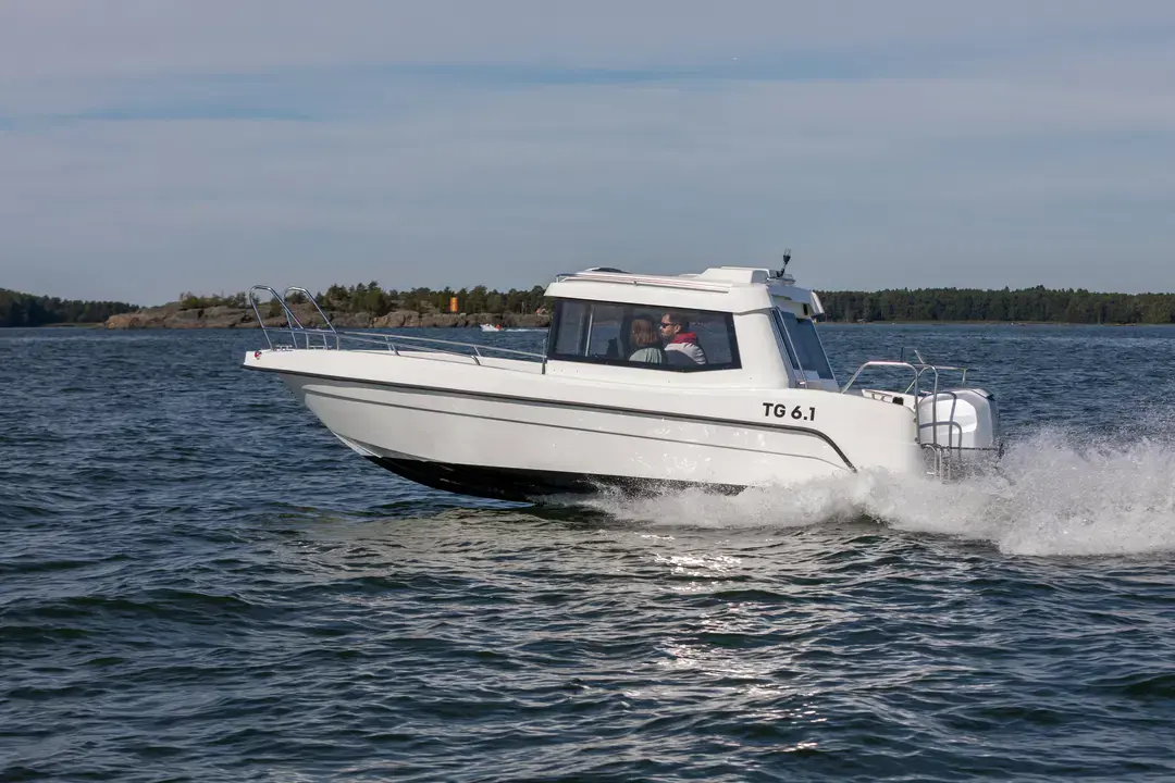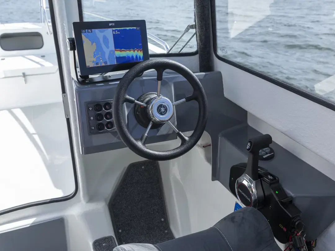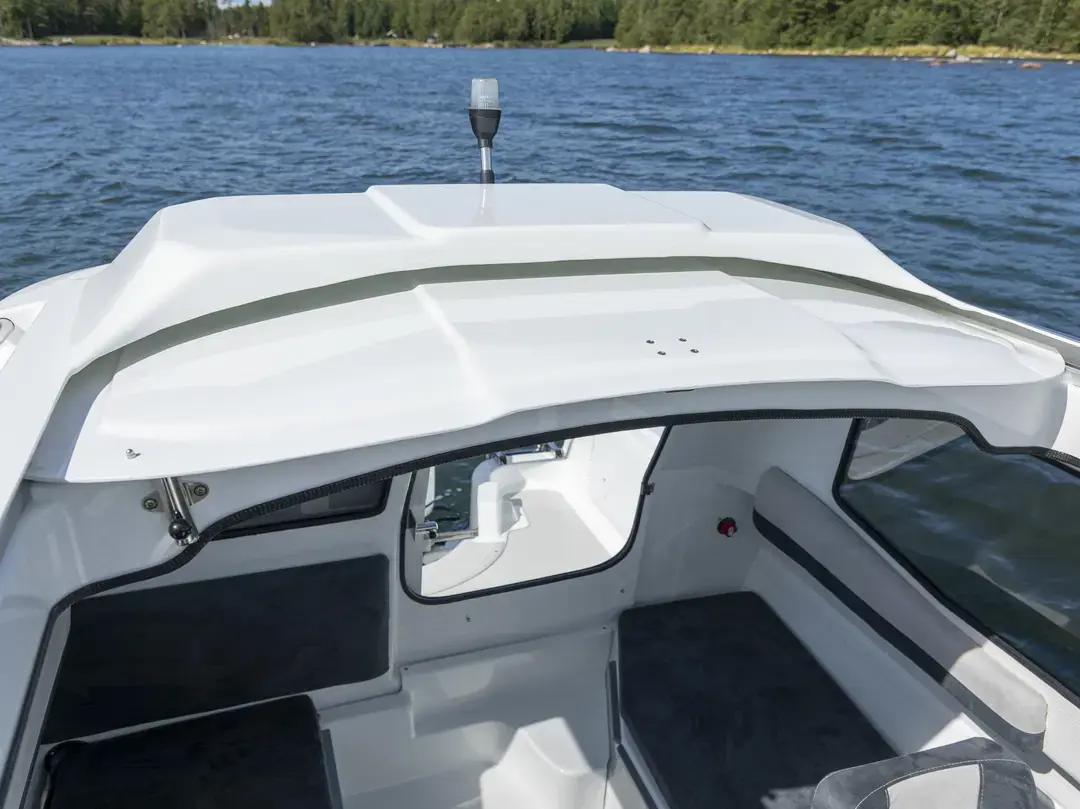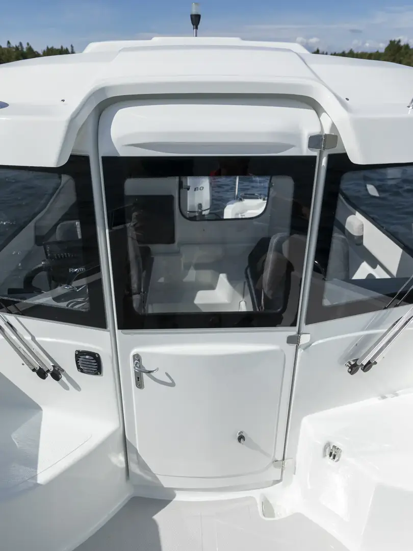 En praktisk og ukomplisert landstedbåt, designet spesielt for kortere turer i skjærgården eller langs kysten. Det åpne baugområdet er trygt med høye rekker og er tilgjengelig for båtfolk i alle aldre. Den kompakte kabinen tilbyr fem passasjerer beskyttelse mot vind og rådende værforhold.