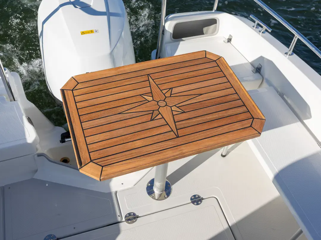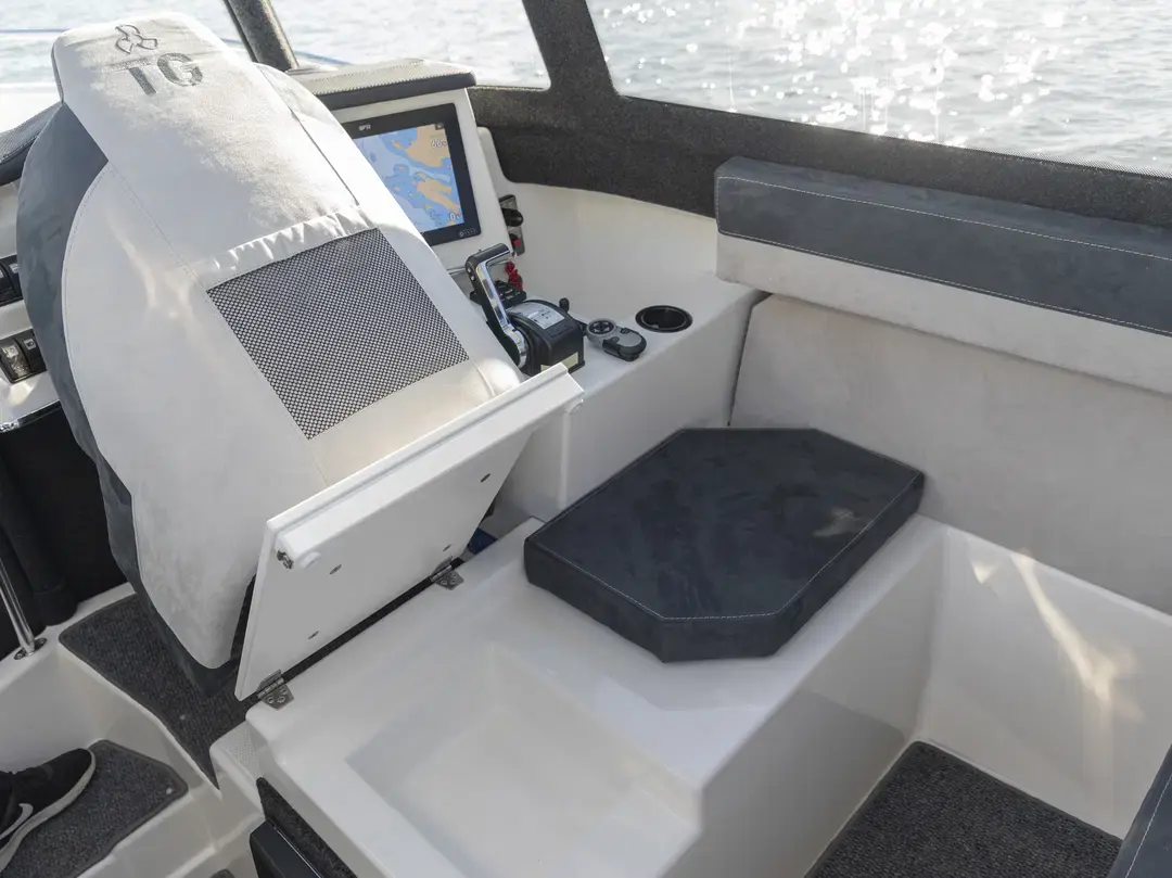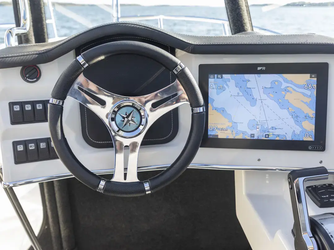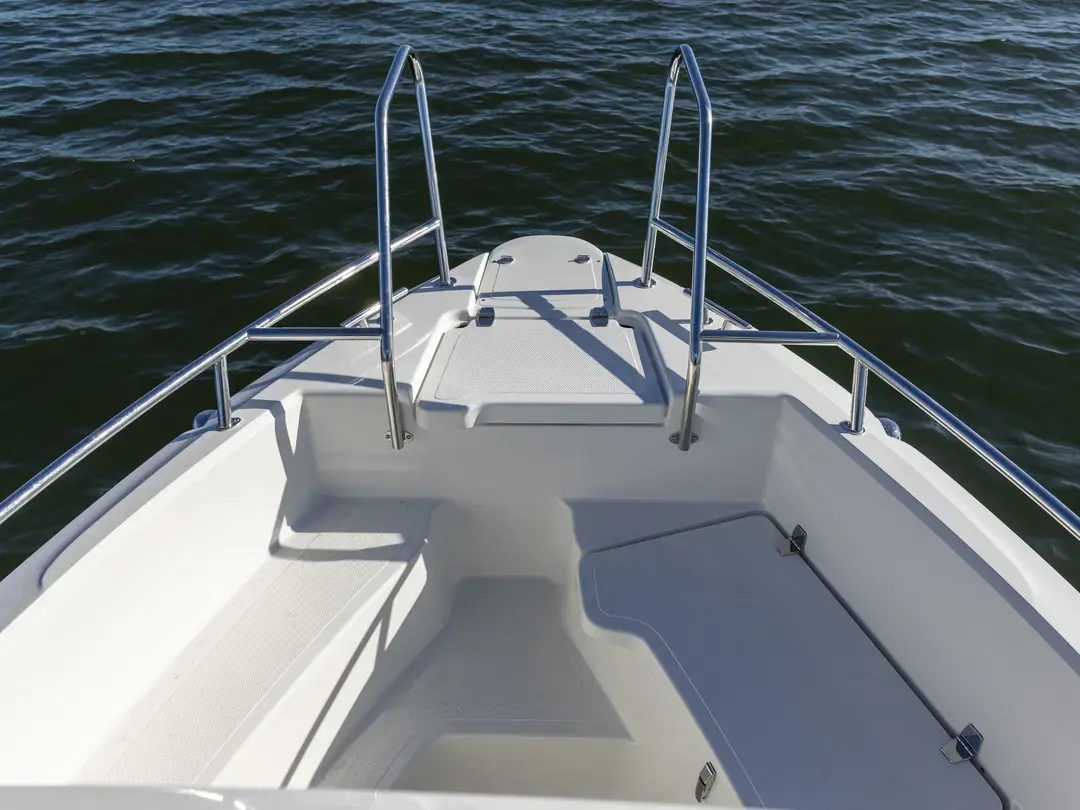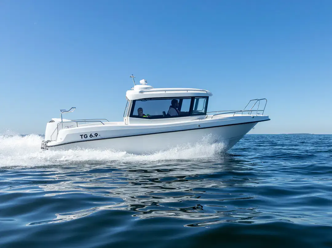 Sosial, bestselgende kabinbåt fra 2019 - 2021 i Finland! Den er komfortabel, romslig og har praktiske detaljer for dagsturbruk. Stort soltak gir mye lys i kabinen og kan åpnes på varme dager.