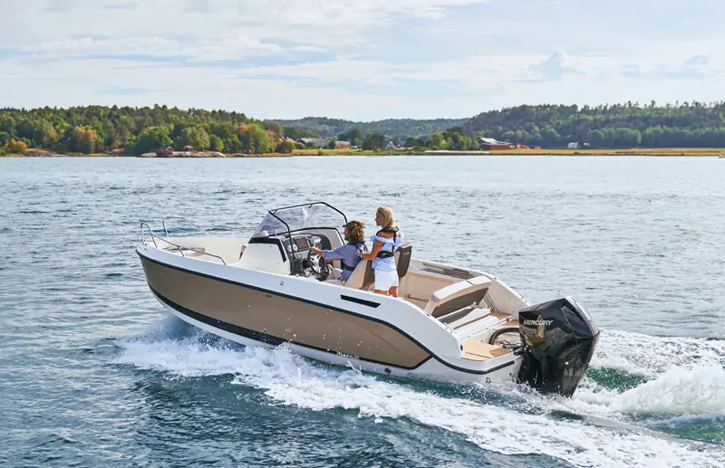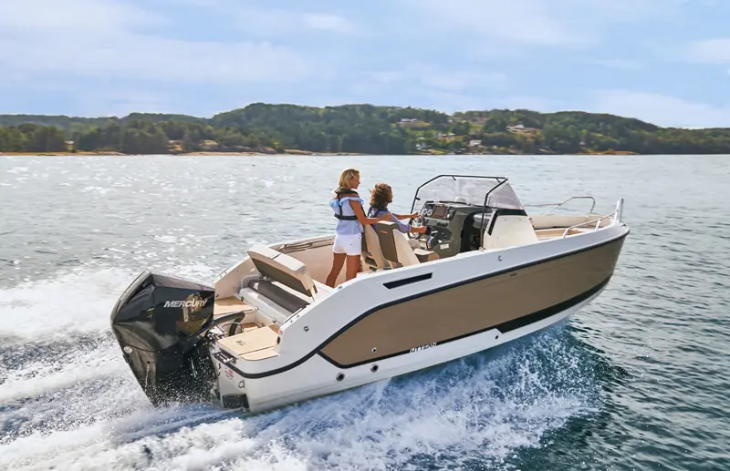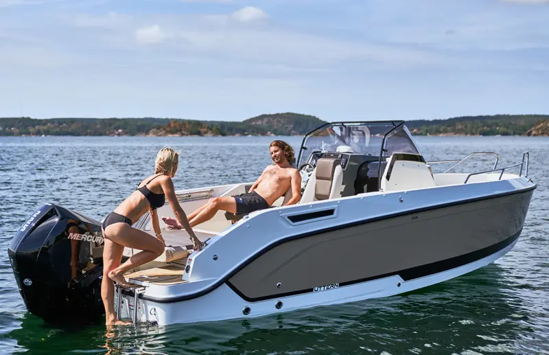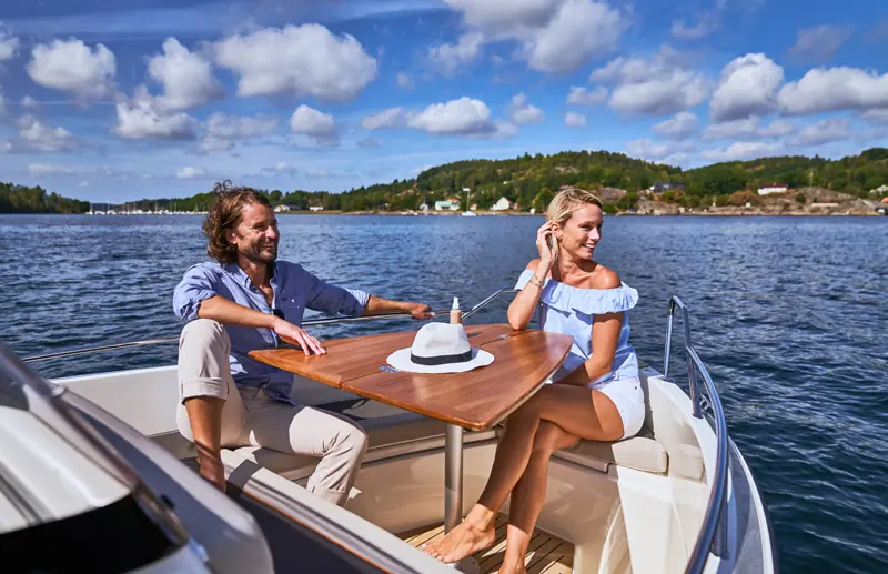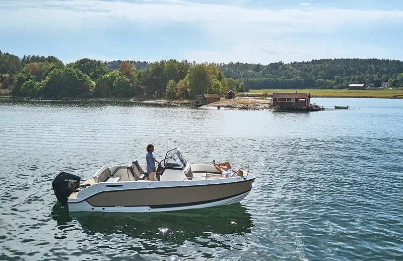 Kan du tro at S65 er like ivrig etter å komme seg på sjøen som du er? Den er vår siste flaggskipmodell i S-serien for midtkonsoller. Du får den beste og mest allsidige friluftsopplevelsen akkurat nå. S65 har plass til sju personer, og soveplass til to. Dermed er det opp til deg: Inviter vennene dine til en piknik på sjøen eller overrask partneren din med en romantisk lunsj på havet. Både før og etter kan du velge mellom massevis av aktiviteter. Stup fra den integrerte svømmeplattformen, nyt solsengen, eller slapp av i den koselige kabinen. Hva om været forandrer seg og du ønsker å bli på dekk? Vi liker tenkemåten din! Den stilfulle vindskjermen og helintegrerte kalesjeløsningen beskytter deg.