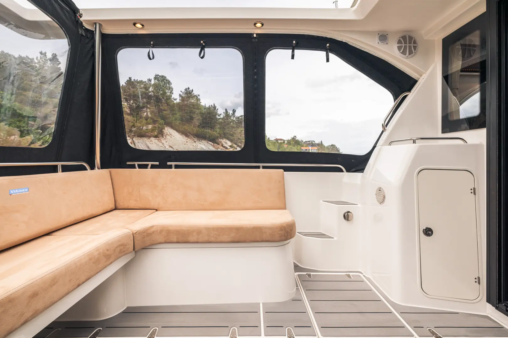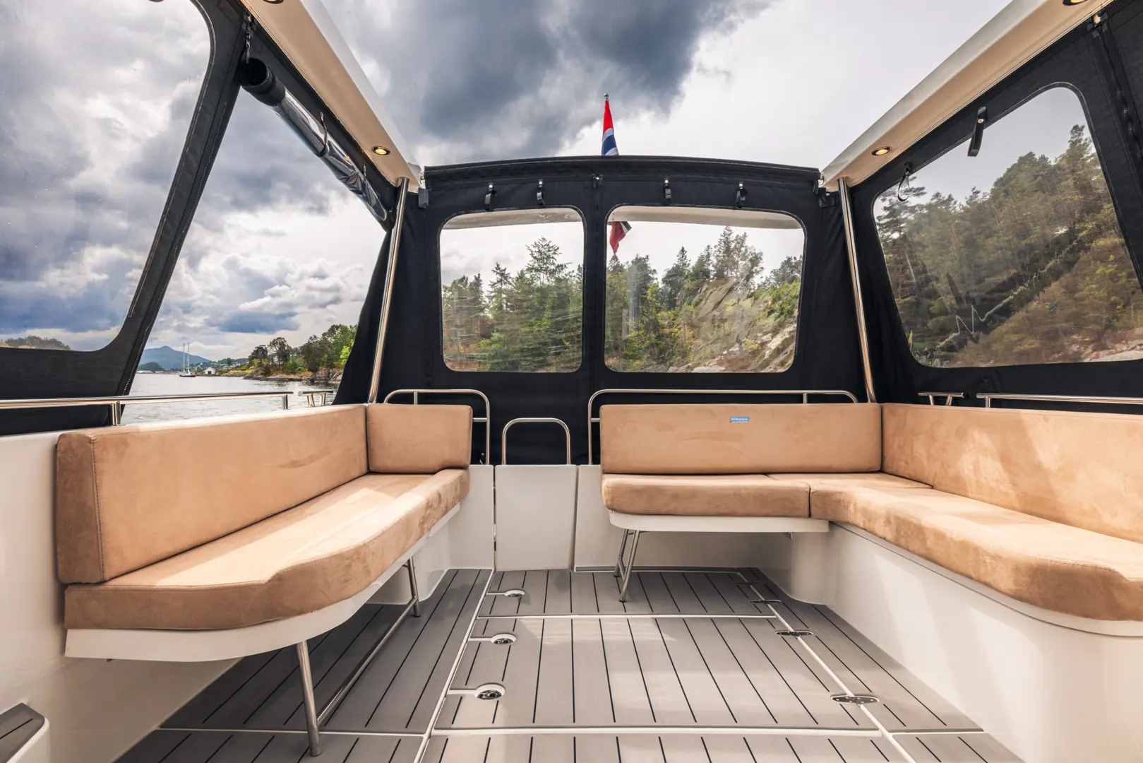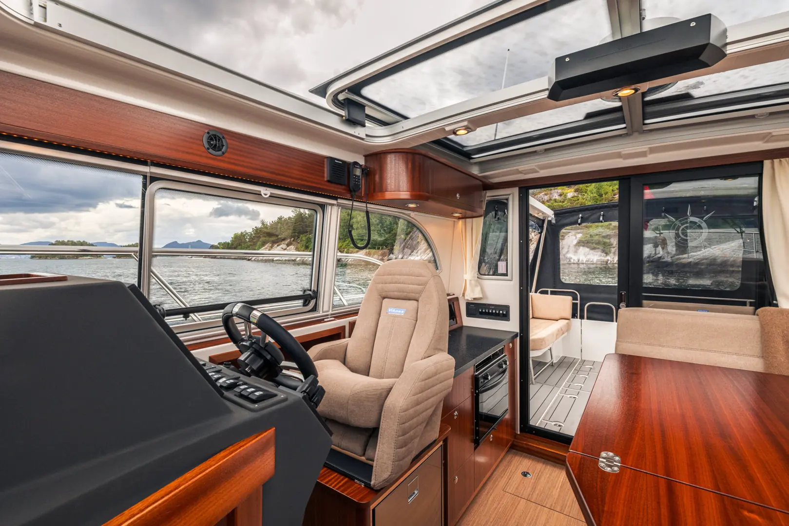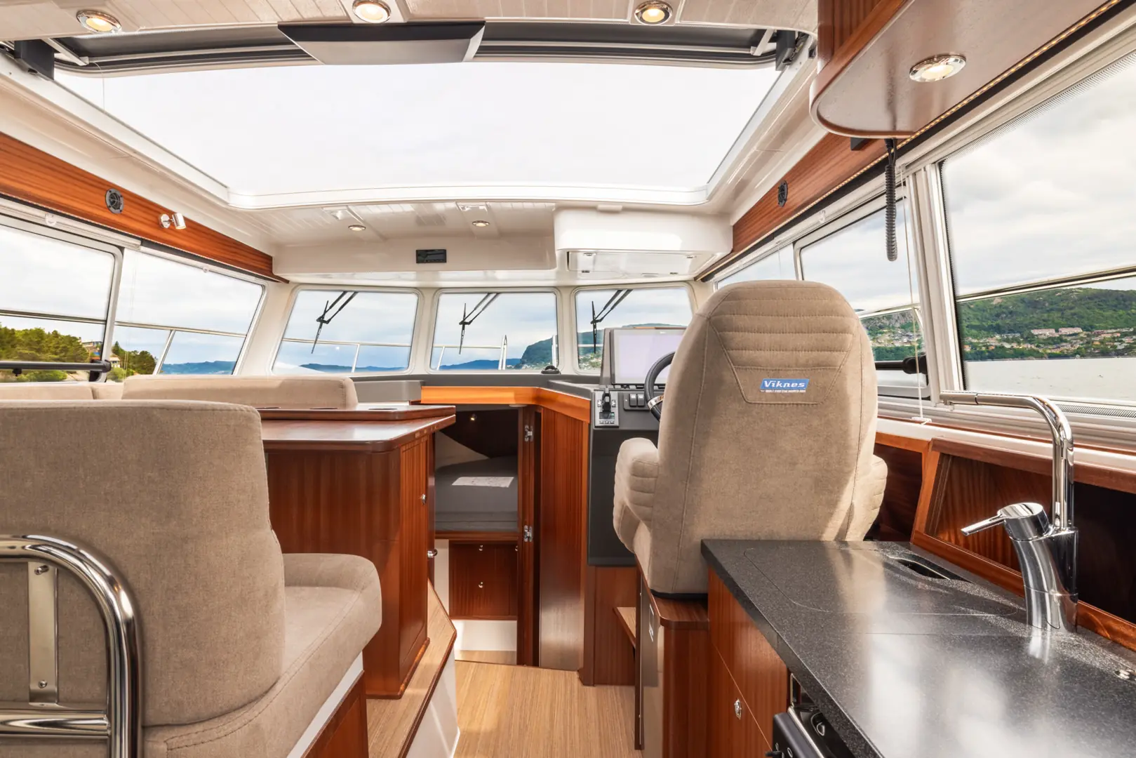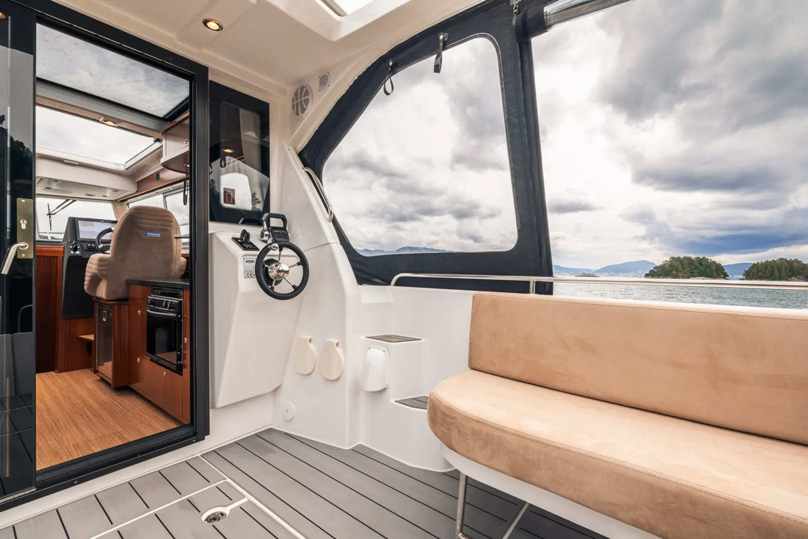 På tross av den gode størrelsen er Viknes 1030 enkel å styre: en utvendig styreposisjon og baugpropell er bare noe av det du får i den innholdsrike standard utstyrspakken. Båten kan snus på en femøring, og enkelt og sikkert legges til i enhver havn. Vårt akterdekk i særklasse lar deg nyte solen til fulle, og den elektriske uttrekkbare kalesjetaket sørger for at du aldri er i beit for oppholdssteder.