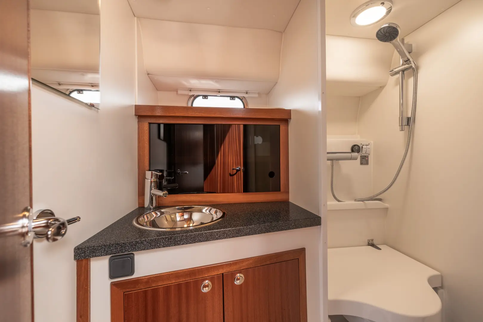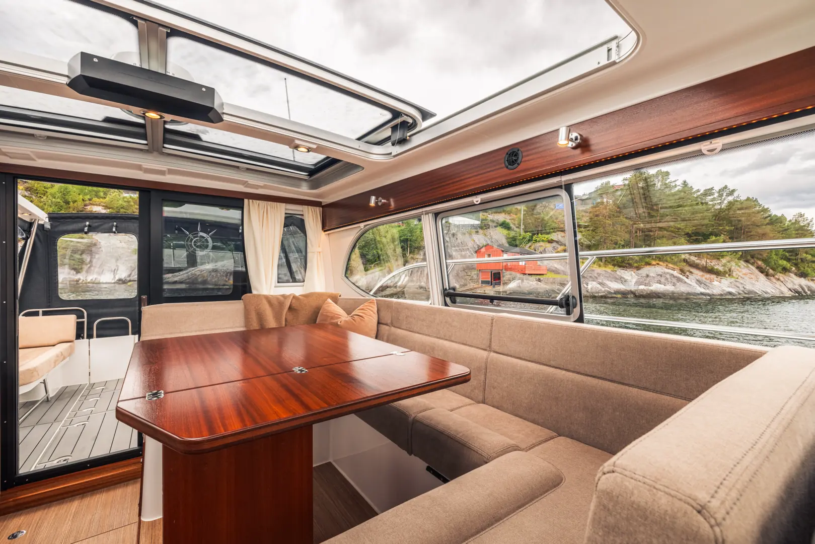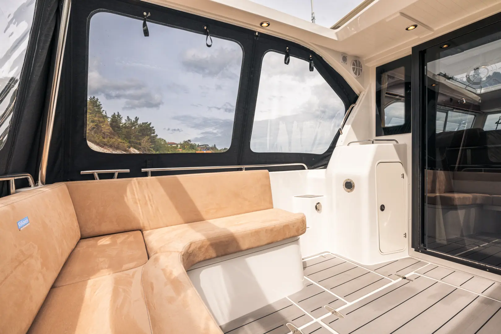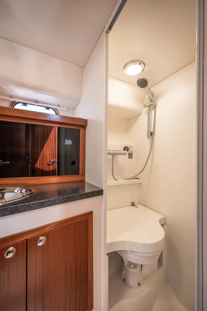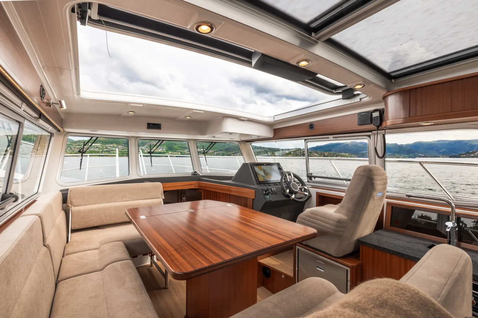 På tross av den gode størrelsen er Viknes 1030 enkel å styre: en utvendig styreposisjon og baugpropell er bare noe av det du får i den innholdsrike standard utstyrspakken. Båten kan snus på en femøring, og enkelt og sikkert legges til i enhver havn. Vårt akterdekk i særklasse lar deg nyte solen til fulle, og den elektriske uttrekkbare kalesjetaket sørger for at du aldri er i beit for oppholdssteder.