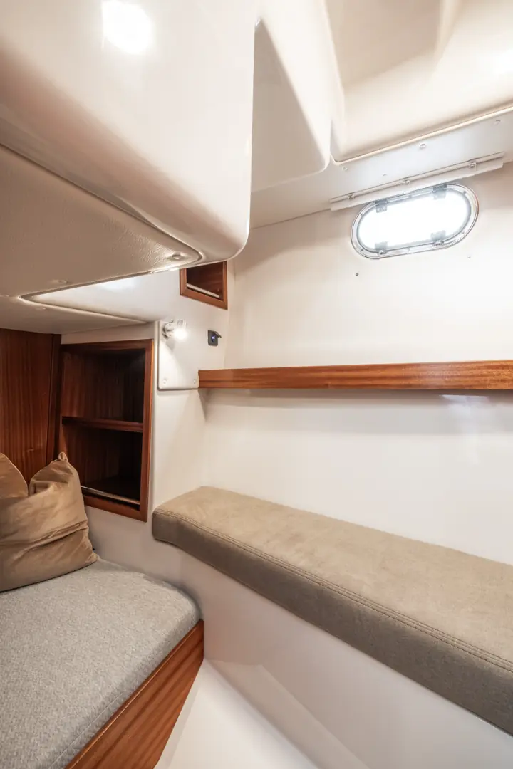 Viknes 1030 er vår bestselgende modell, og har raskt blitt en moderne norsk klassiker. Og det er ikke rart: Denne båten passer like godt til lange ferier som til korte, raske turer. Romslige fasiliteter gir deg en uovertruffen komfort om bord. I det flotte styrhuset har du perfekte omgivelser til både å slappe av og å underholde gjester, og de store kabinene gir både deg og gjestene dine rikelig med plass til å slappe av på turen. Fem sengeplasser er standard på denne modellen.