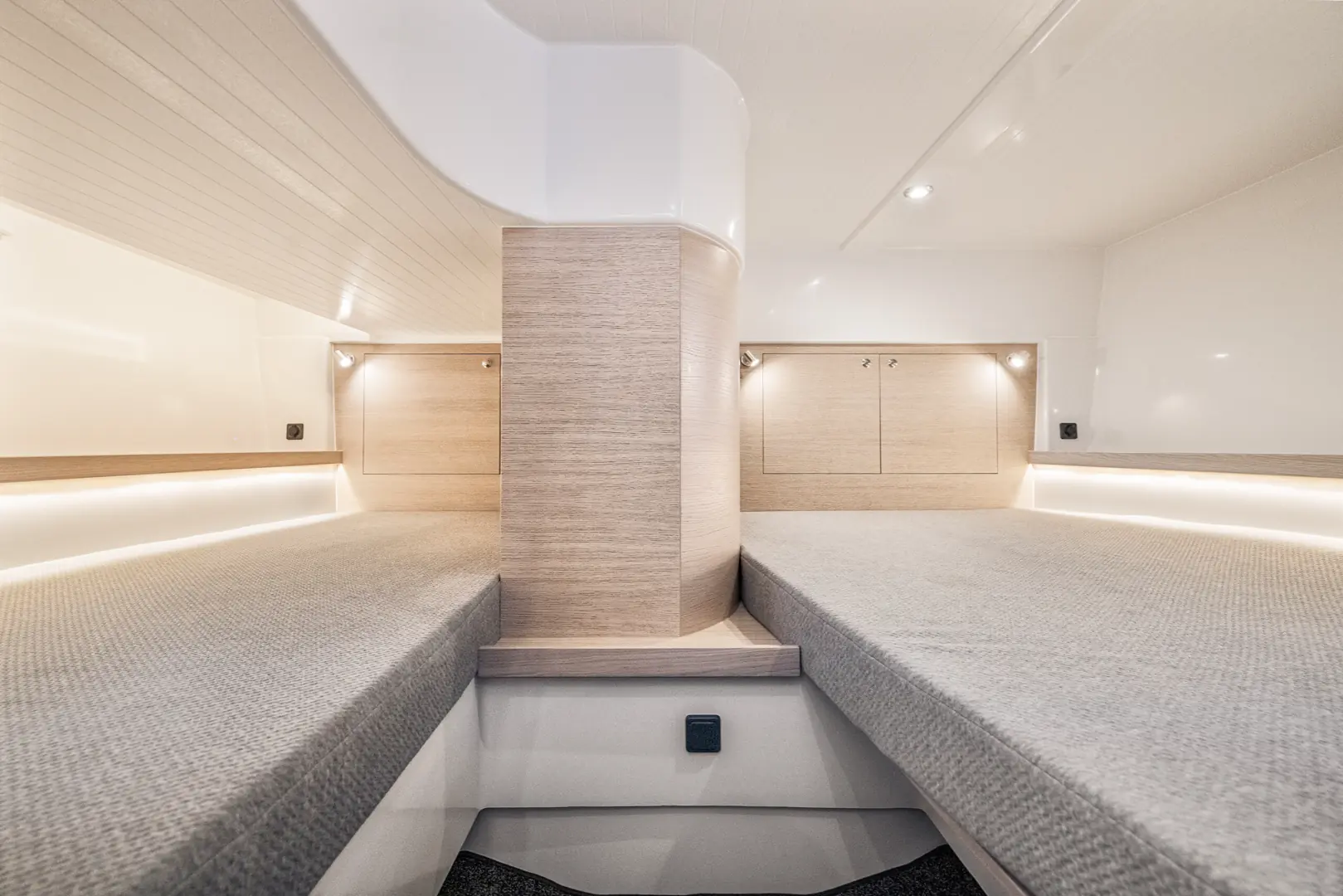 En lys og luftig familiebåt, med rene, åpne linjer.