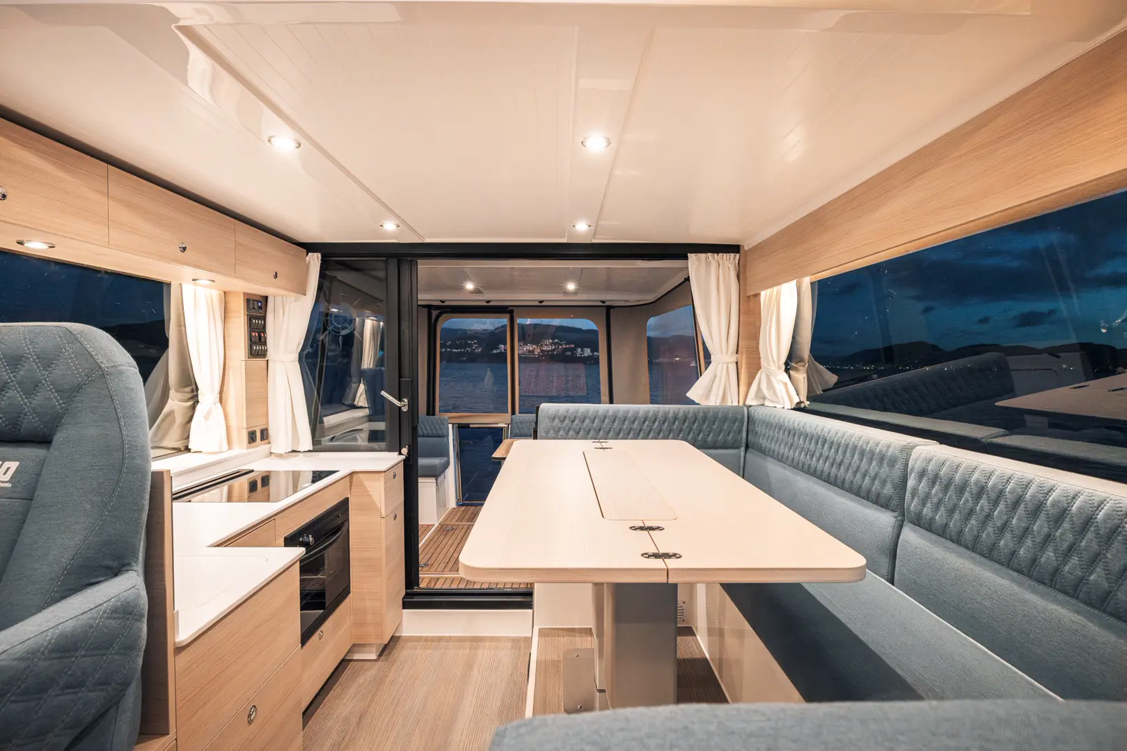 Viknes S40 er en moderne, lys og romslig cruiser. Med 3 flotte kabiner og separat bad og dusjrom er dette en perfekt båt for hele familien. Salongen er åpen og innbydende med massevis av naturlig lys, og med skyvedør og hev/senk glass mellom salongen og akterdekket får du en sømløs overgang fra ute, helt inn til en velutstyrt cockpit.