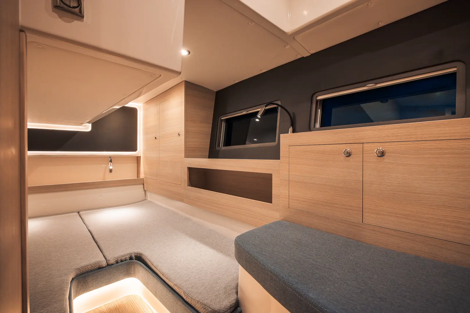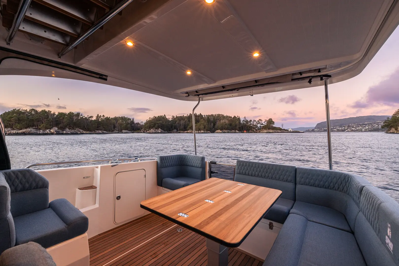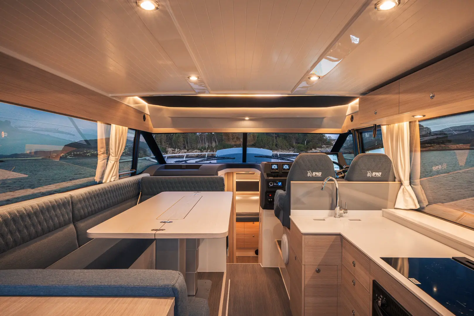 Viknes S40 er en moderne, lys og romslig cruiser. Med 3 flotte kabiner og separat bad og dusjrom er dette en perfekt båt for hele familien. Salongen er åpen og innbydende med massevis av naturlig lys, og med skyvedør og hev/senk glass mellom salongen og akterdekket får du en sømløs overgang fra ute, helt inn til en velutstyrt cockpit.