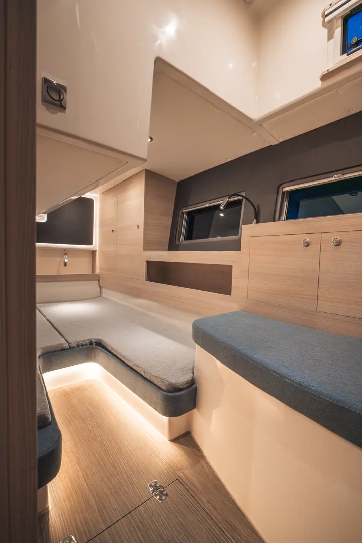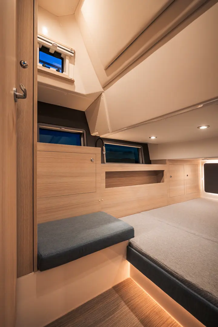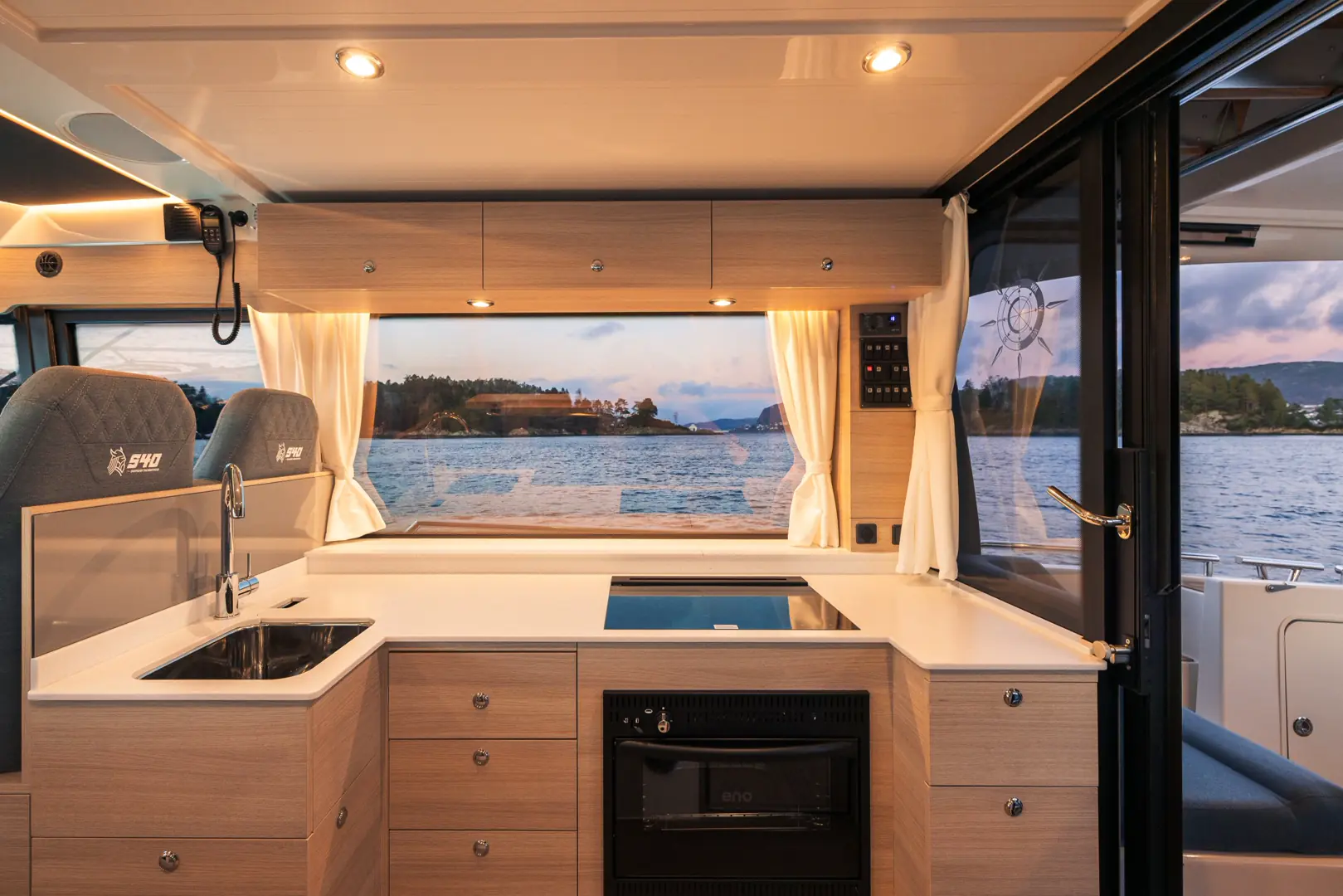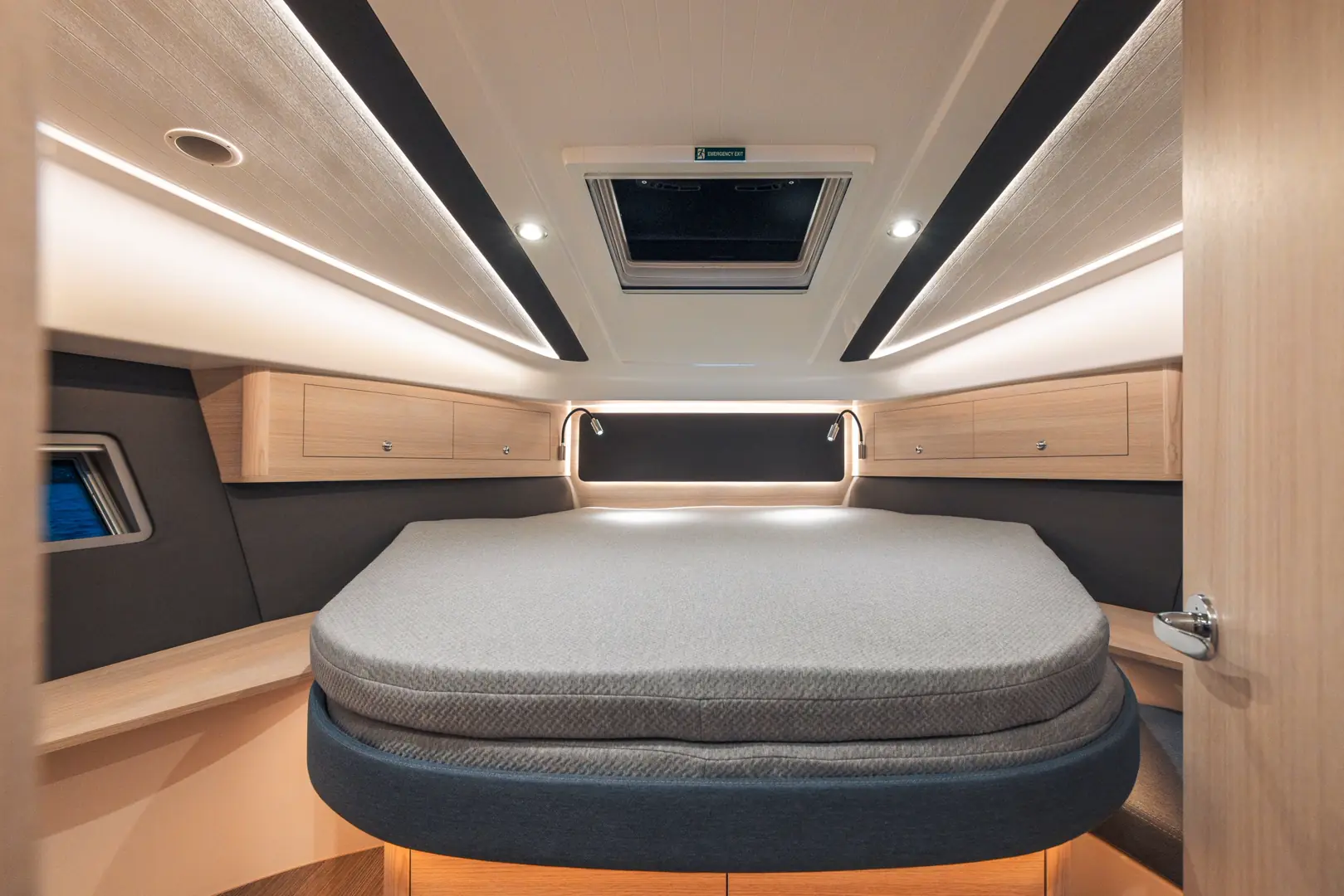 Viknes S40 er en moderne, lys og romslig cruiser. Med 3 flotte kabiner og separat bad og dusjrom er dette en perfekt båt for hele familien. Salongen er åpen og innbydende med massevis av naturlig lys, og med skyvedør og hev/senk glass mellom salongen og akterdekket får du en sømløs overgang fra ute, helt inn til en velutstyrt cockpit.