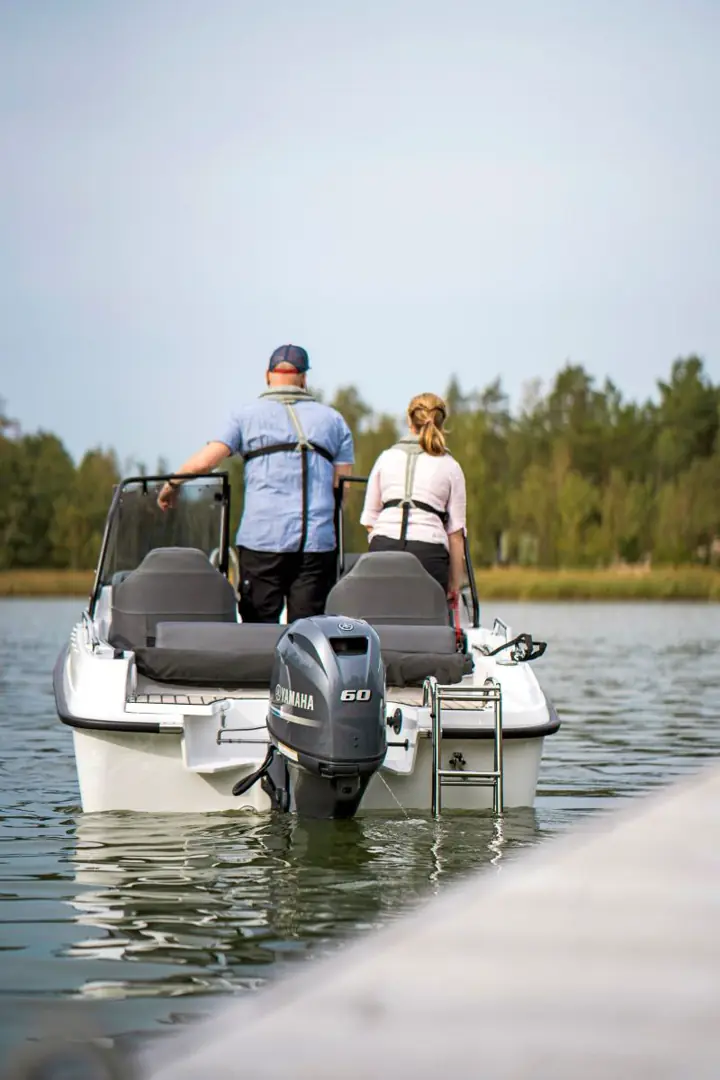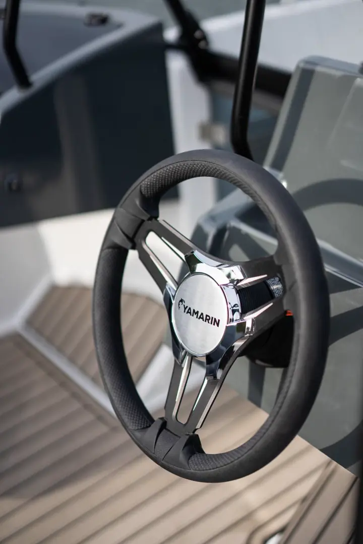 Standard utstyr inkluderer dør mellom vindskjermene, puter på hekken og to gode seter. Som tilbehør finnes blant annet kalesje akter, nytt komfortabelt Softdeck-dekkmateriale og en 10-tommers Yamarin Q smartskjerm.