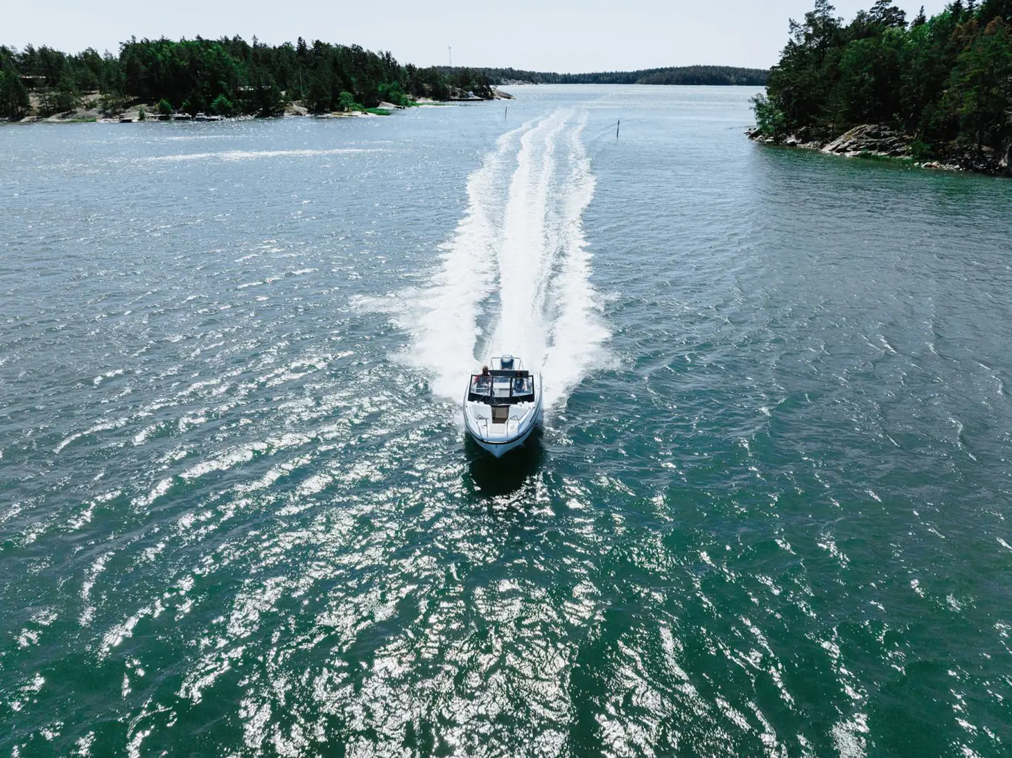 Vindskjermen er utformet for å gi god beskyttelse for vind og sjøsprøyt, med fin skjerming også for de som sitter i aktersofaen. Vindskjermen strekker seg akterover langs sidene. Høyden er optimalisert ved hjelp av vindstrømberegninger.