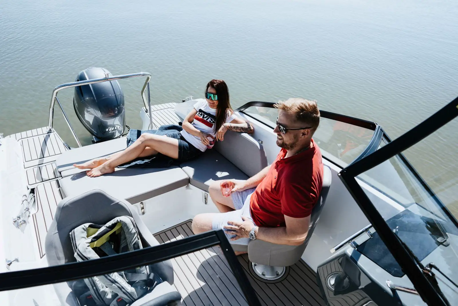 Området akter domineres av en stor sofa med vippbar rygg som med et enkelt håndgrep gjøres om til en komfortabel solseng. Setene til styrmann og passasjer kan svinges og skaper et sosialt område hvor man kan slappe av på fjorden som i havn.