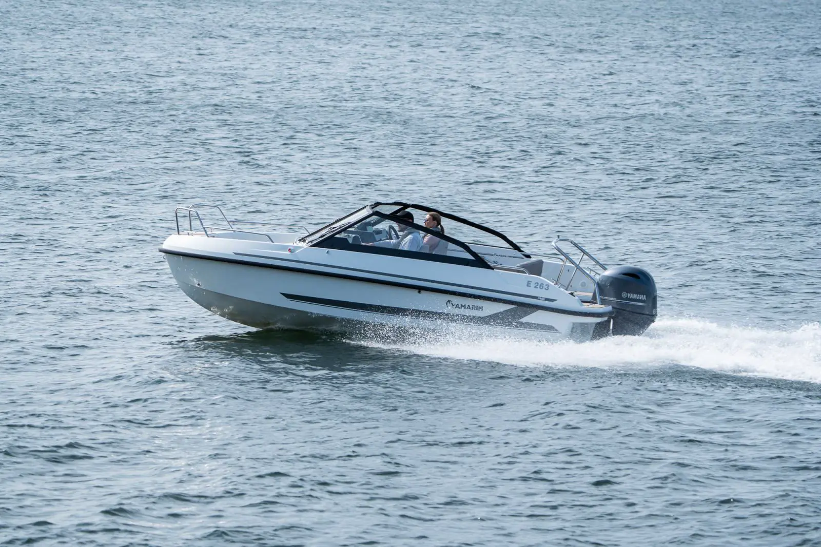 Yamarin 59 BR er en sportslig båt, men også stabil og forutsigbar i sjøen, selv når værforholdene er krevende. Formen og bredden på skroget garanterer uansett en trivelig kjøreopplevelse. Det største motoralternativet er Yamaha F115 som gir toppfart på rundt 37 knop.