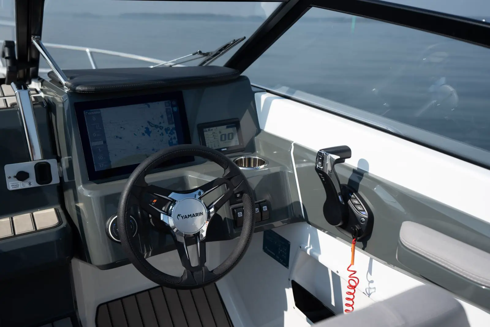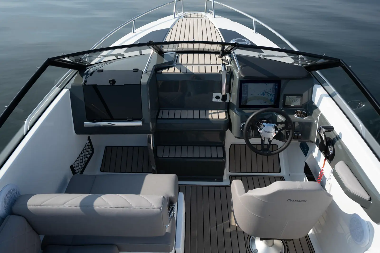 Ergonomien på førerplassen var et viktig område da Yamarin 63 DC ble designet. Førersetet har en rekke justeringsmuligheter og det er en solid fotstøtte som gir føreren mange muligheter til å finne sin optimale kjørekomfort. Komforten er også forbedret ved hjelp av Yamarin Q-systemet som leveres som standard. Systemet viser båtens instrumenter, kart, vær-tjenester og mange andre praktiske funksjonaliteter på én skjerm.