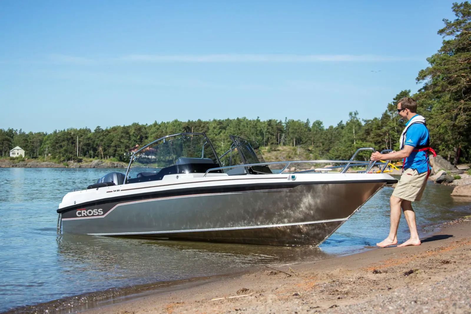 Cross 54 BR er stor nok til at hele familien kan nyte båtlivets gleder. Båten er svært stabil for størrelsen, oppfører seg forutsigbart i sjøen, og gir masse kjøreglede. Høye skrogsider og solide håndrekker sørger for best mulig sikkerhet når man beveger seg rundt i båten. Det store sitteområdet er godt beskyttet av vindskjermen, slik at selv de yngste passasjerene sitter lunt og tørt om bord. Du kan stole på Cross 54 BR, og glede deg over de gode båtopplevelsene.
