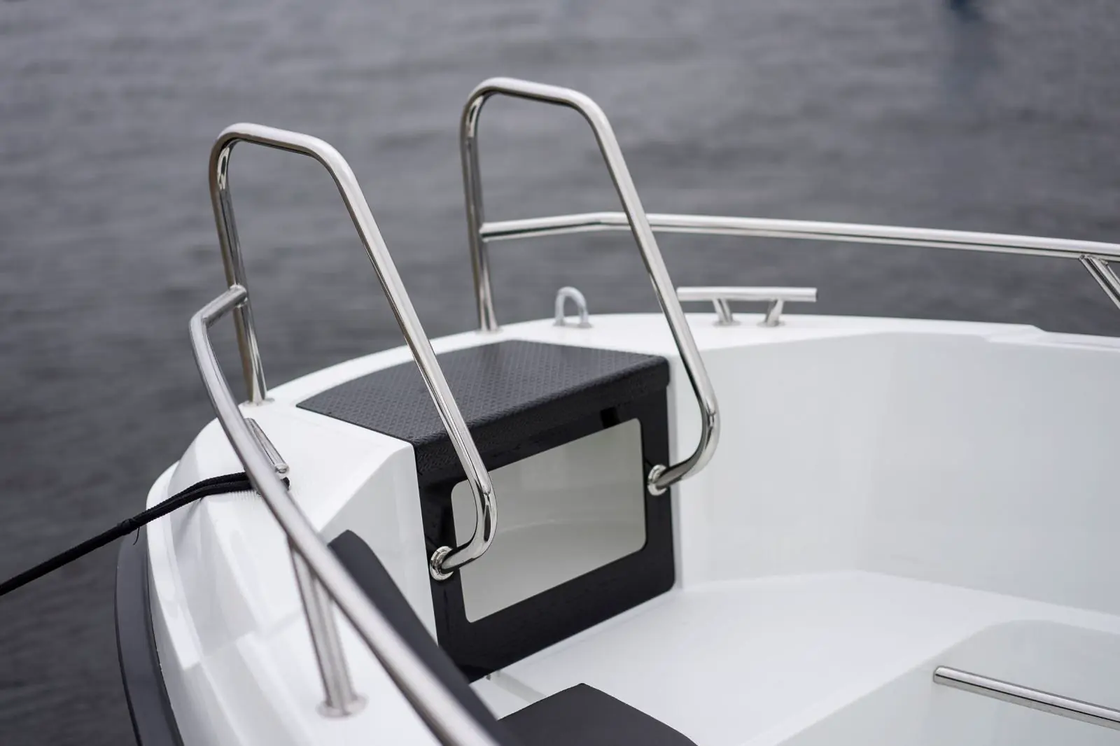 Det er flere praktiske detaljer å glede seg over: Forut er inn- og utstigning av båten gjort enkel og trygg takket være to gode trinn opp i baugen. En holder for fendere og eget rom for tauverk gjør at du aldri lurer på hvor fortøyningsutstyret skal ta veien. Dessuten har området her fremme en fin sitteplass og solide rekker å holde seg i.