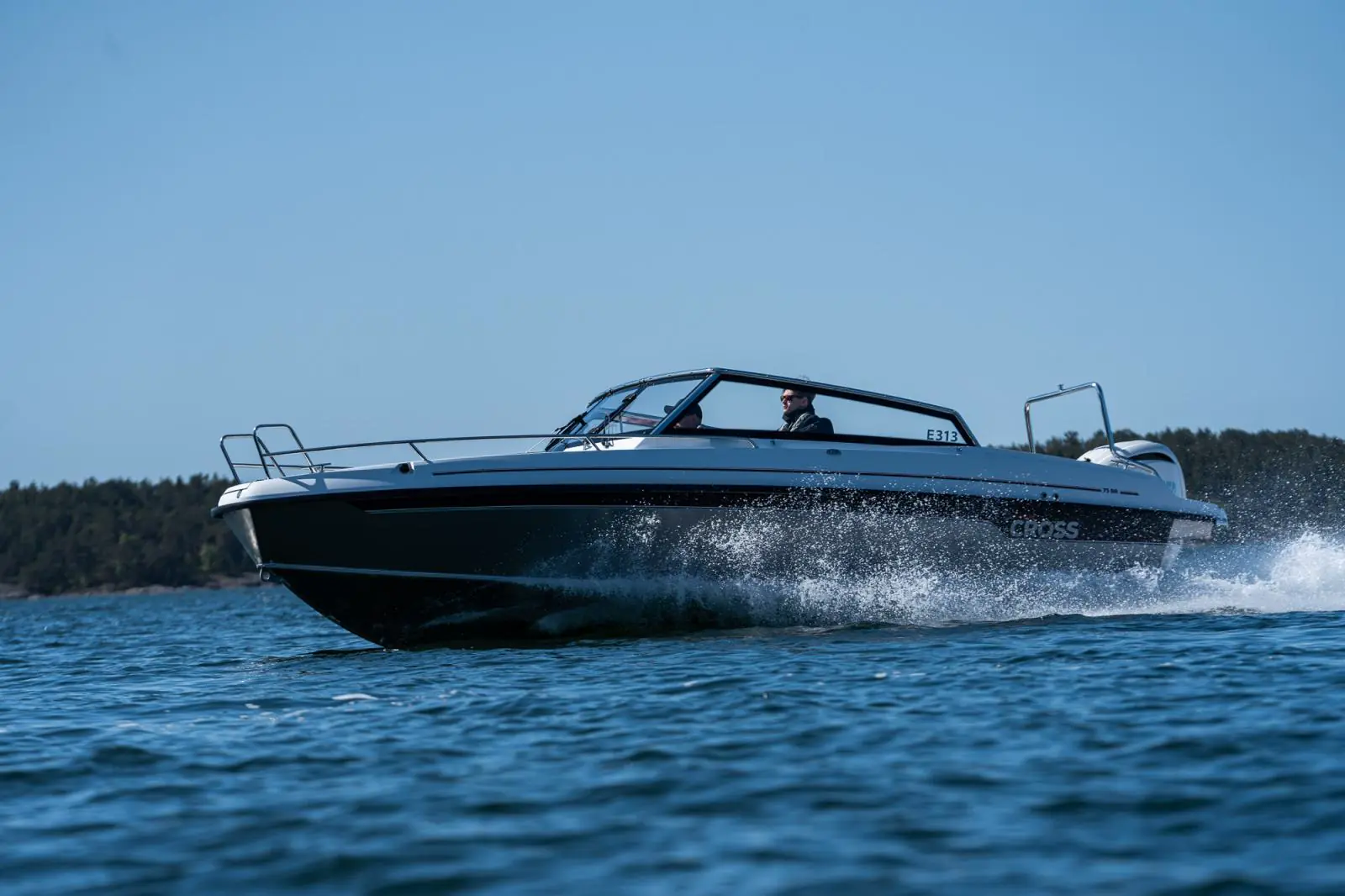 Har du en Cross 75 BR liggende ved brygga, gir det en egen følelse av frihet. Her blir båtbruken sjelden begrenset av plass, rekkevidde eller værforhold. Toppmodellen i Cross-serien tar nemlig kombinasjonen av solid aluminiumsskrog og flott glassfiberinnredning til nye høyder. Sjøegenskapene tåler lange turer i åpent farvann, mens en moderne innredning gir plass til 9 personer og byr på mange praktiske detaljer.