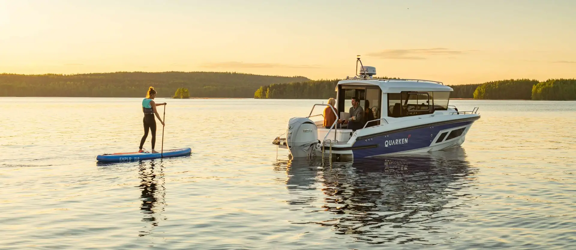 Finske Quarken er en relativt ny aktør i det nordiske båtmarkedet, men bak merket står et team med omfattende erfaring fra selskaper som Finnmaster, Yamarin og Saxdor. Navnet er hentet fra Kvarken (The Quark), det værharde havstykket i Bottenviken som skiller Finland og Sverige, noe som understreker merkets ambisjon om å bygge båter som tåler reelle nordiske forhold. Designfilosofien forener moderne, finsk funksjonalitet med avansert skrogteknologi, der fokuset ligger på kjøreglede, drivstoffeffektivitet og modulære løsninger.