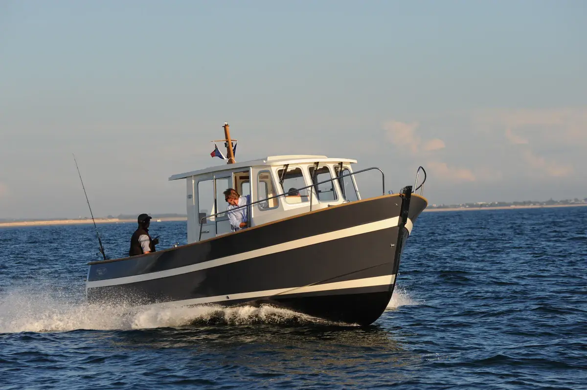 Franske Rhéa-Marine, med base i La Rochelle ved Atlanterhavskysten, har spesialisert seg på produksjon av motorbåter som kombinerer tradisjonelle linjer fra franske fiskefartøy med moderne vesteuropeisk båtbyggerteknikk. Verftets designfilosofi preges av de karakteristiske "trawler-skrogene" med loddrett baug, dype kjøler og utfallende sider, noe som gir båtene en gjenkjennelig profil og stor stabilitet i grov sjø. Rhéa benytter i stor grad tradisjonelle materialer som teak og rustfritt stål i kombinasjon med moderne komposittskrog, noe som gir fartøyene et tidløst og maritimt uttrykk.