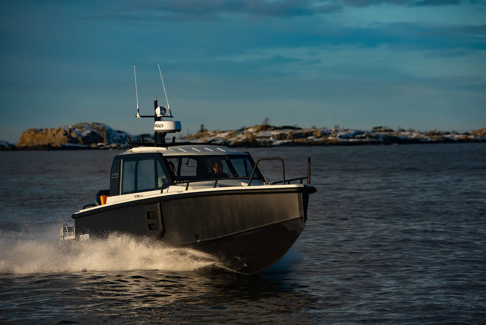 Finske XO Boats har markert seg i fritidsbåtmarkedet med et utpreget utilitaristisk design og fokus på sjøegenskaper i tøft vær. Produsentens tekniske signatur er bruken av smale, dype V-skrog i sveiset maritimt aluminium, kombinert med dekk, innerliner og overbygg støpt i glassfiber. Denne hybridkonstruksjonen er valgt for å utnytte aluminiumets robusthet og tåleevne mot mekaniske påkjenninger, samtidig som glassfiberen gir mulighet for en mer kompleks og ergonomisk utforming av interiøret.
